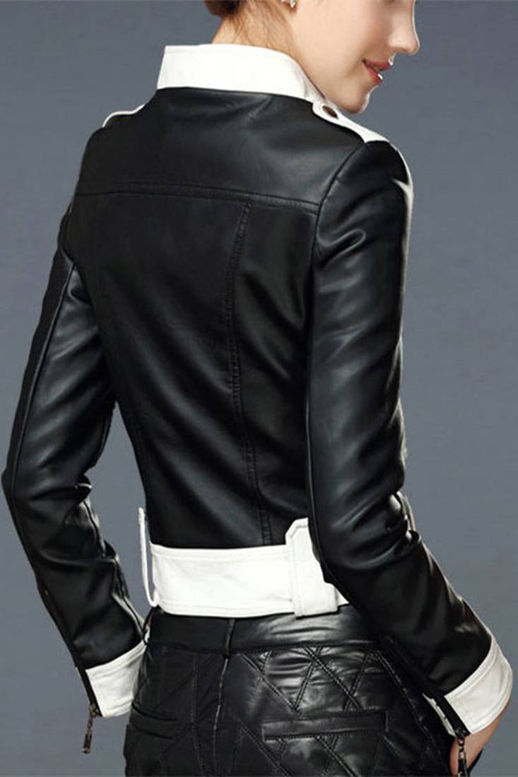 | Product Name | Women’s Stylish Black & White Leather Jacket Genuine Lambskin Western Button Pockets | |