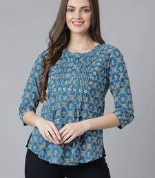 Product Name Teal Printed Pintuck Top