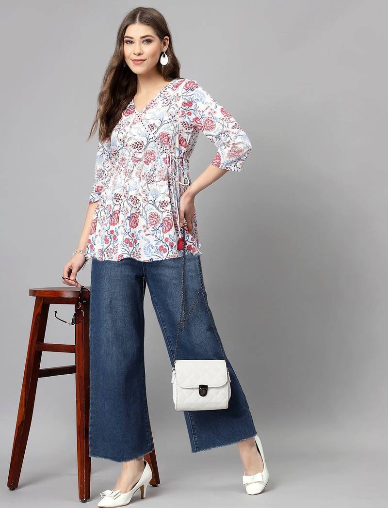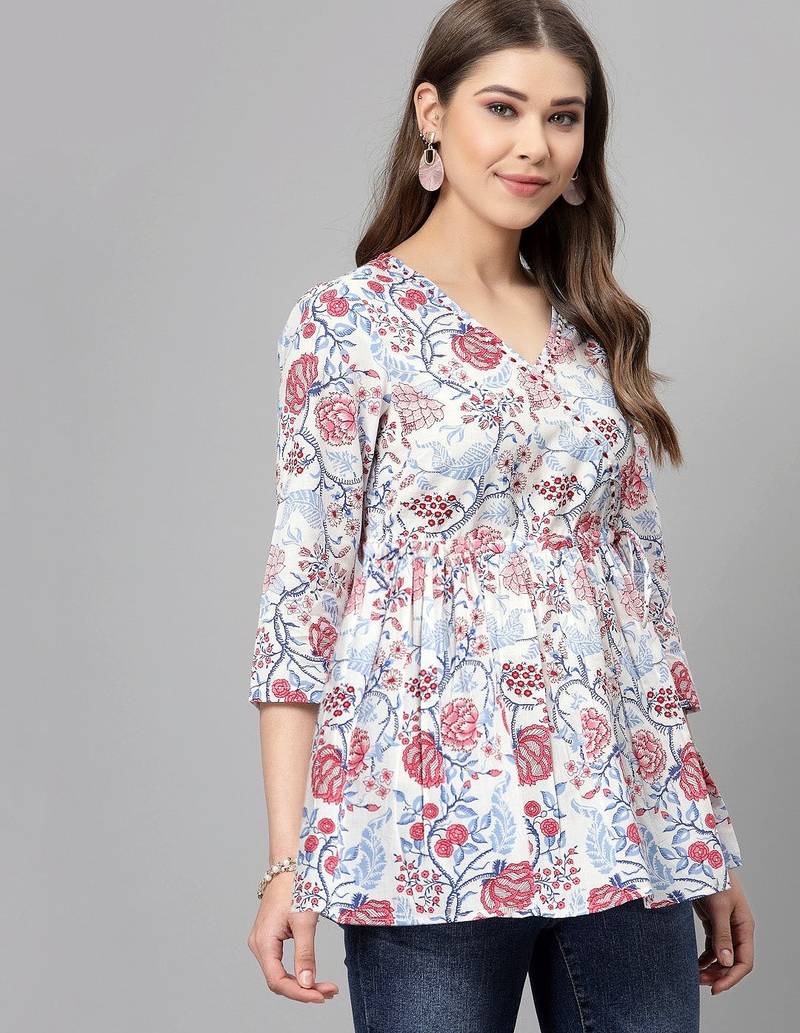 | Product Name | White And Red Ethnic Floral Printed Top | |