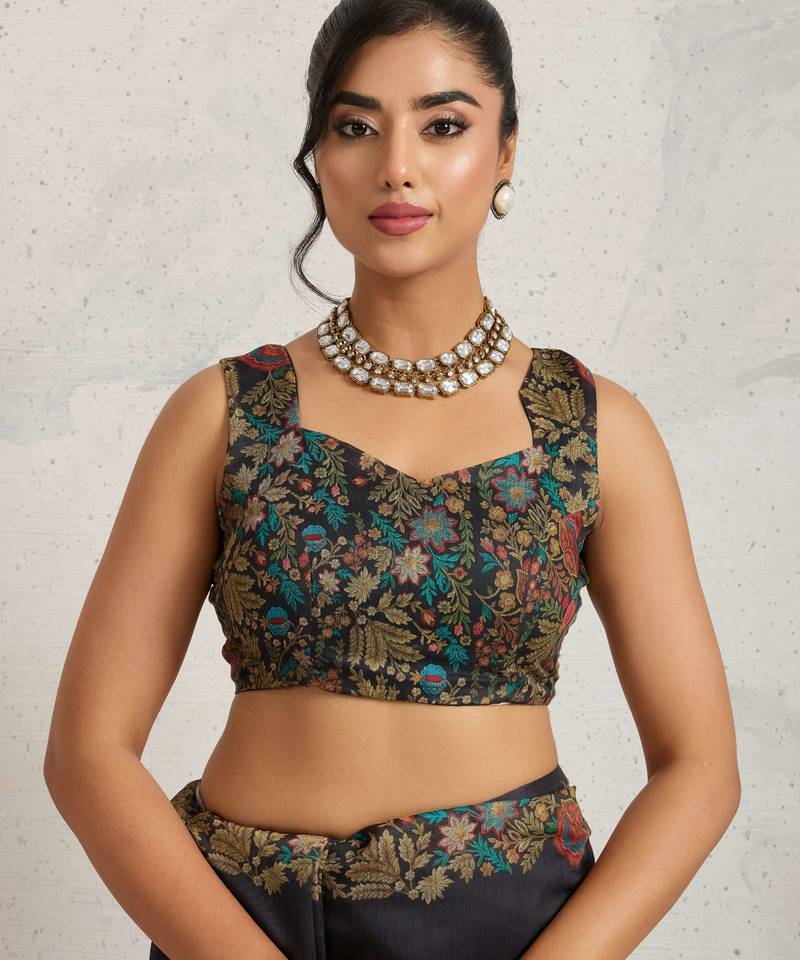 Product Name Black Floral Print Silk Ethnic Causal Wear Saree With Blouse