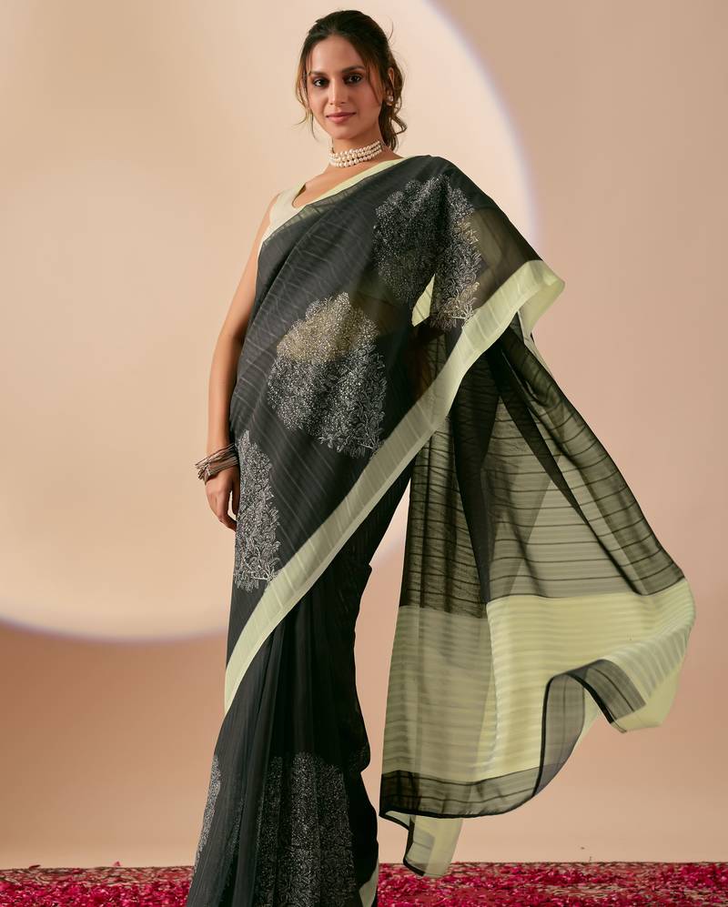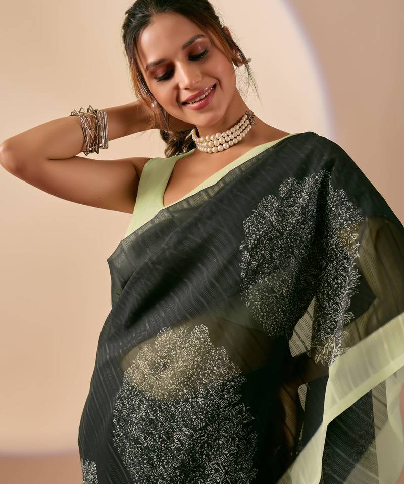 Product Name Black Floral Print Silk Festive Ethnic Saree With Blouse