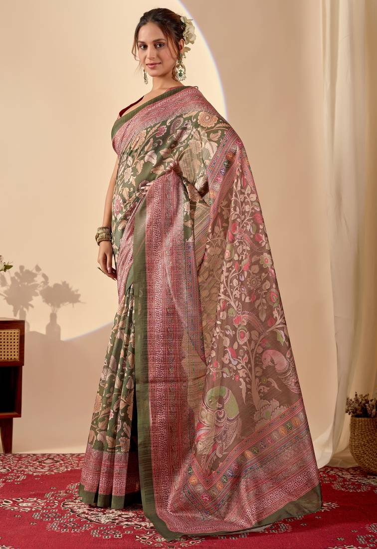 | Product Name | Green Digital Floral Print Chiffon Festive Ethnic Saree With Blouse | |