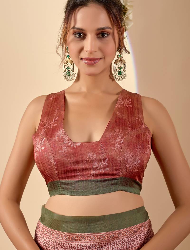 | Product Description | This Sophisticated Green Digital Floral Print Chiffon Saree, Which Combines Grace And Contemporary Ethnic Style, Will Update Your Holiday Outfit. The Saree Is Ideal For Festive And Special Occasions Because Of Its Lovely Digital Floral Designs, Which Lend A Delicate And Feminine Touch. |