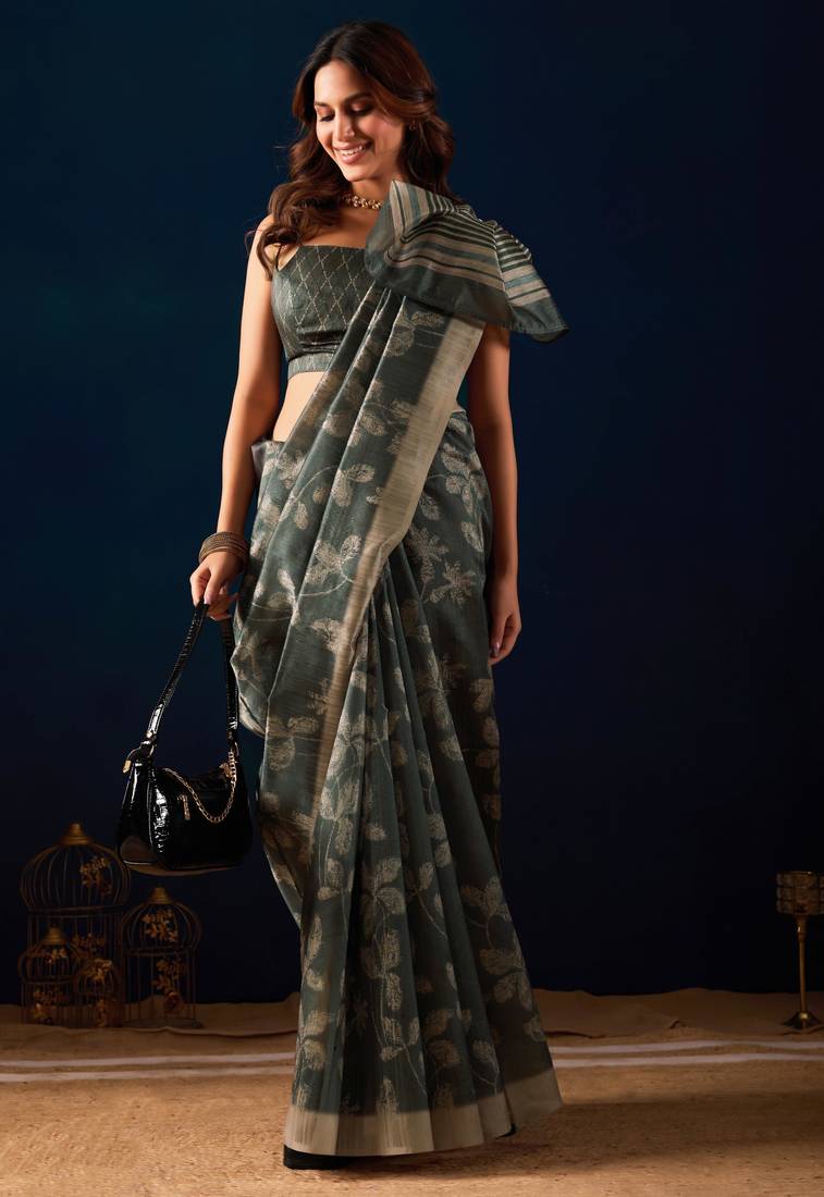 | Product Name | Green Digital Floral Print Chiffon Festive Ethnic Saree With Blouse | |