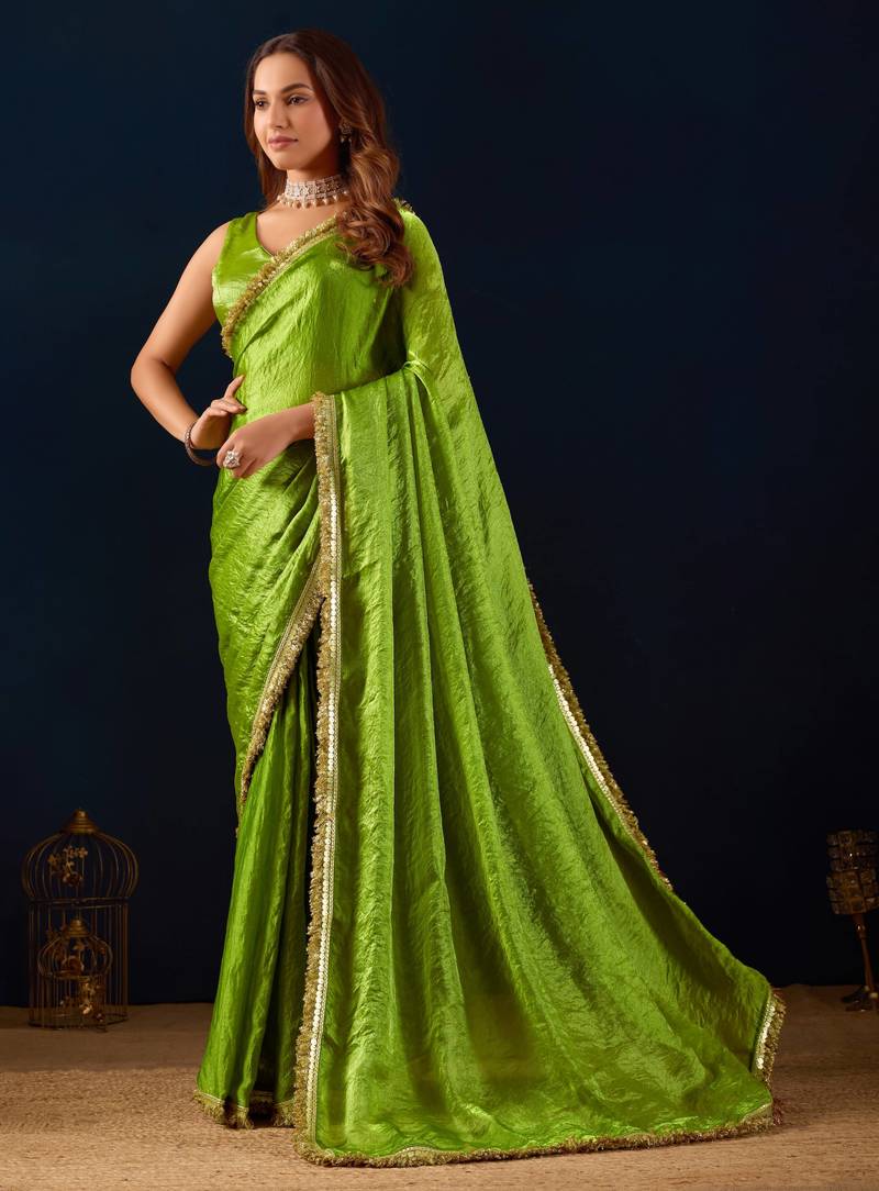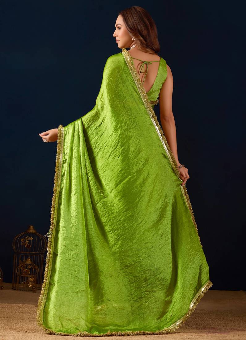 | Product Description | This Sophisticated Green Lehriya Geometric Border Georgette Holiday Ethnic Saree Will Provide A Bright Touch To Your Holiday Attire. Inspired By Traditional Rajasthani Lehriya Patterns, This Saree Beautifully Combines Classic Ethnic Design With Modern Styling. It Is Ideal For Celebratory Events, Parties, And Special Occasions Because Of Its Refreshing Green Color And Chic Geometric Border. |