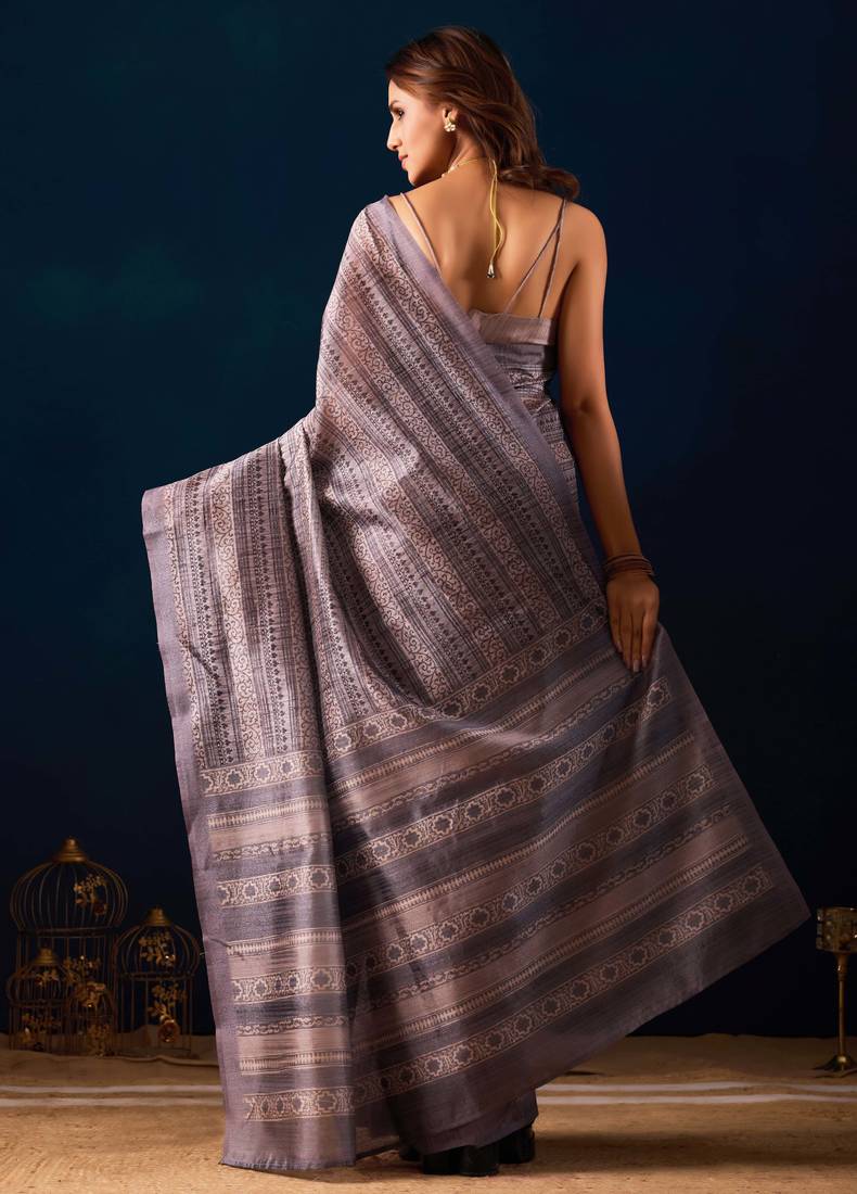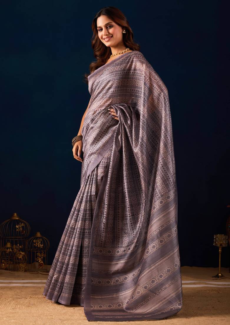Grey digital kalamkari print cotton silk festive elegent saree with blouse
