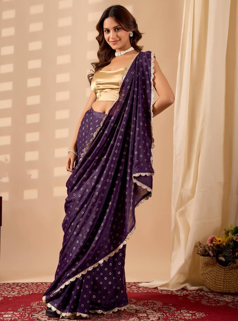 | • | Saree | : | Color- Purple / Fabric- Georgette |