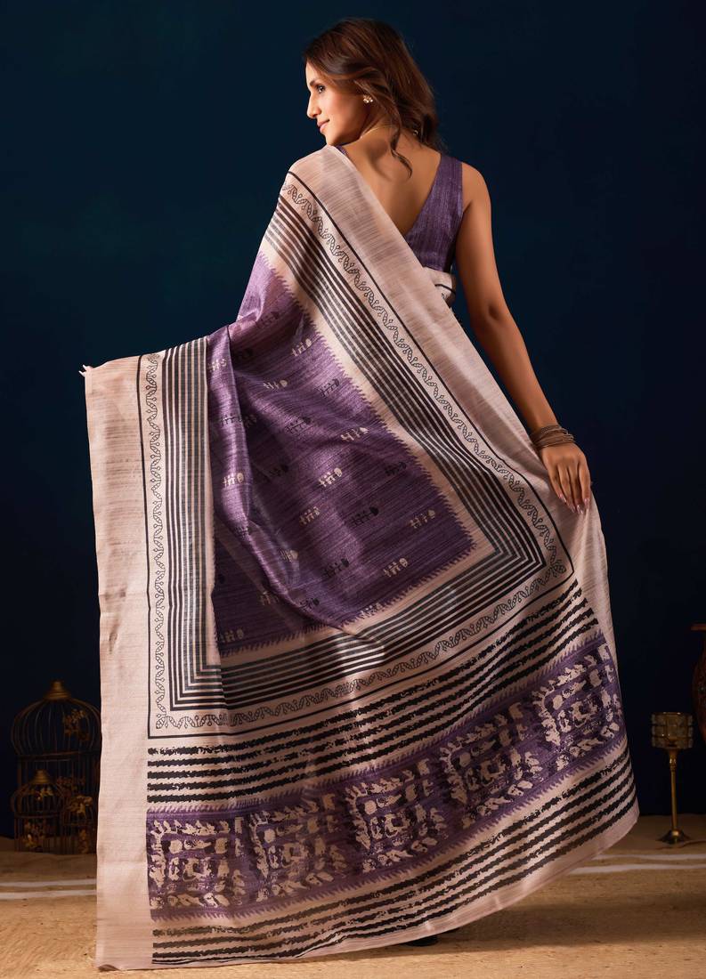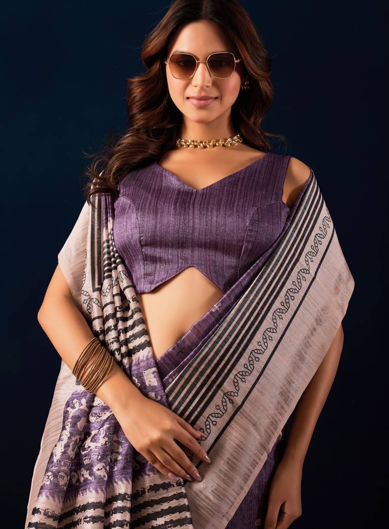 Purple floral printed cotton silk ethnic wear saree with blouse