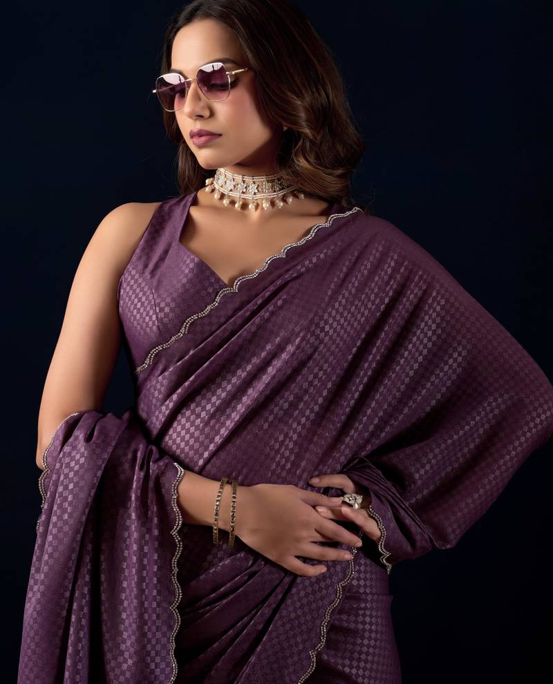 | Product Description | This Gorgeous Purple Digital Foil Work Modern Ethnic Festive Saree Will Add A Touch Of Regal Elegance To Your Holiday Attire. This Saree Skillfully Combines Contemporary Style With Classic Appeal Thanks To Its Elegant Digital Designs And Delicate Foil Work. The Saree Is Ideal For Festive Festivals, Parties, Weddings, And Other Special Occasions Because Of Its Elegant And Opulent Appeal Due To Its Rich Purple Hue. |