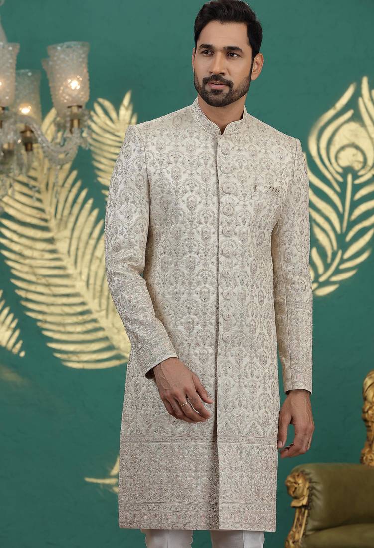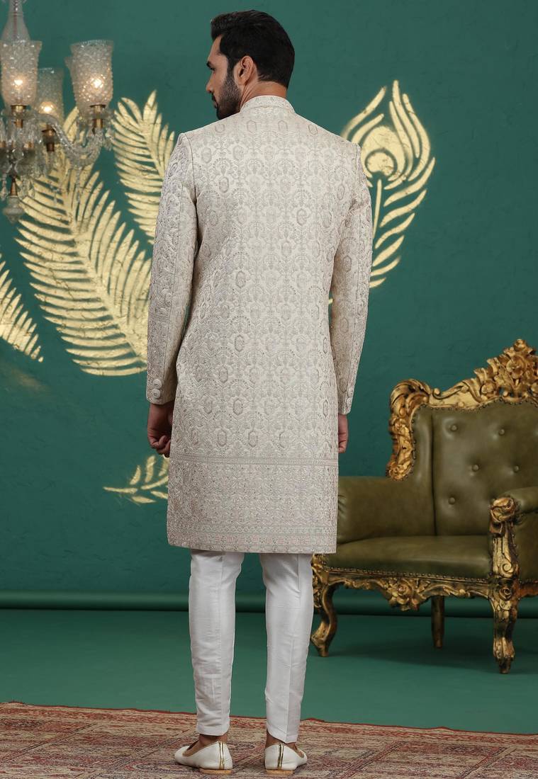 | Product Name | Beige Computer Thread Work On Art Silk Sherwani For Men | |