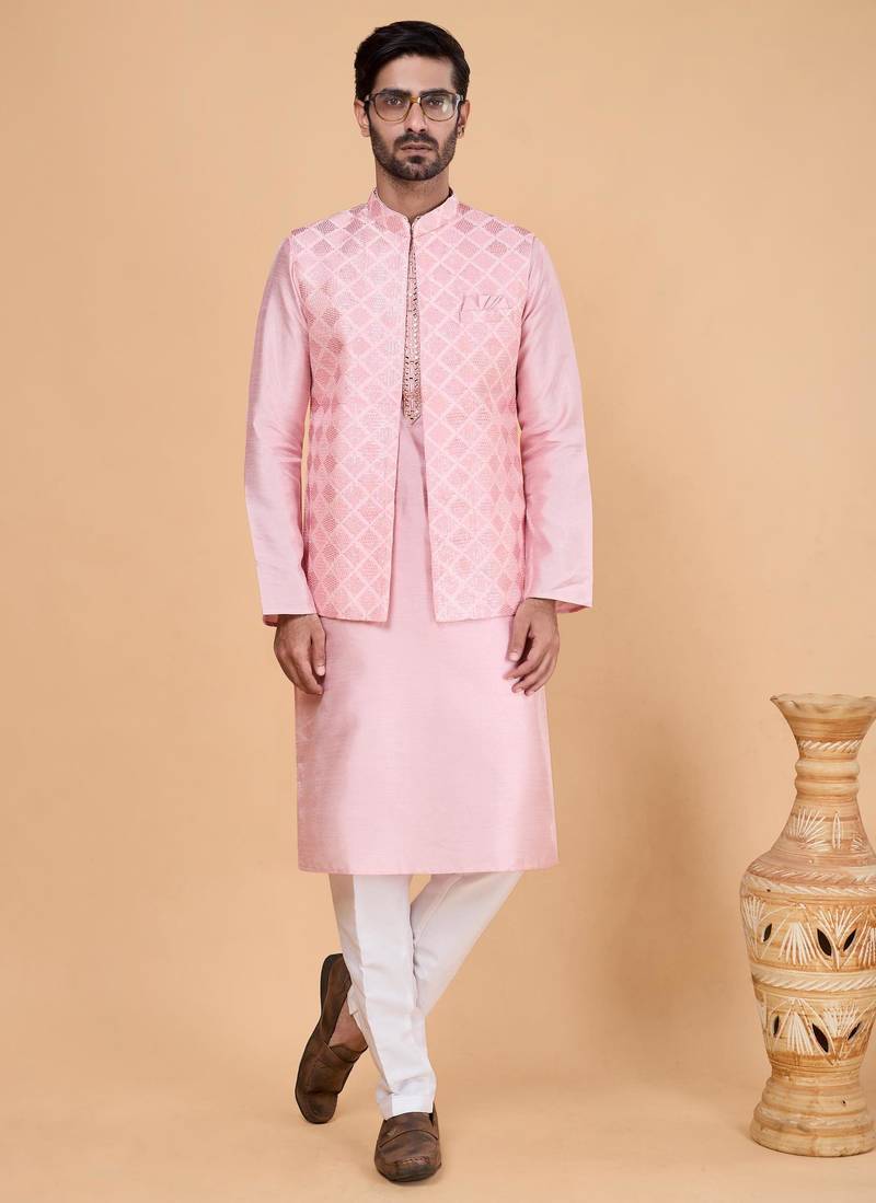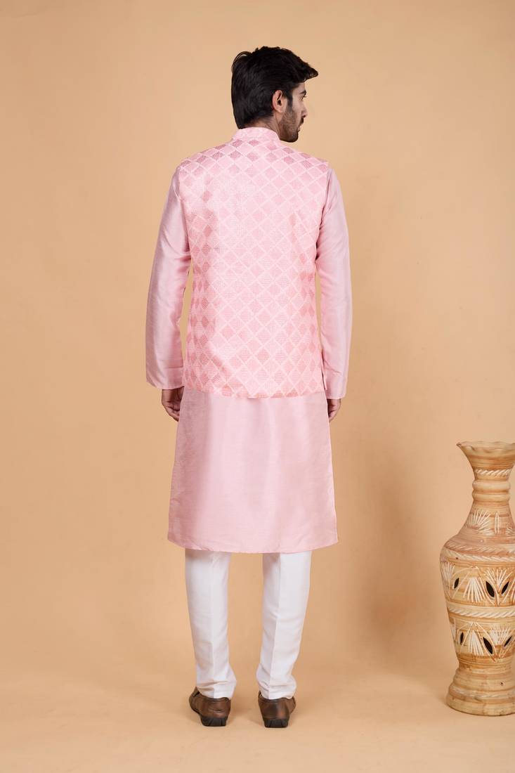 | Product Name | Pink Art Silk 3 Piece Kurta Jacket Set For Men | |