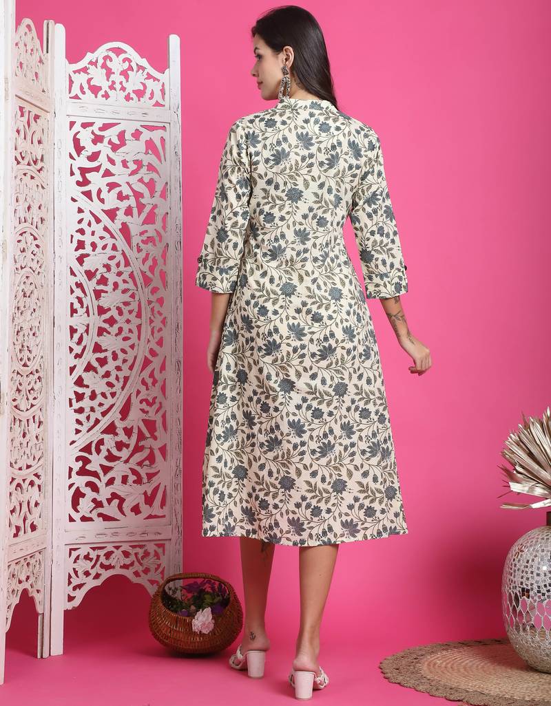 Product Name Beige & Grey Women's Pure Cotton Jaipuri Printed Western Dress