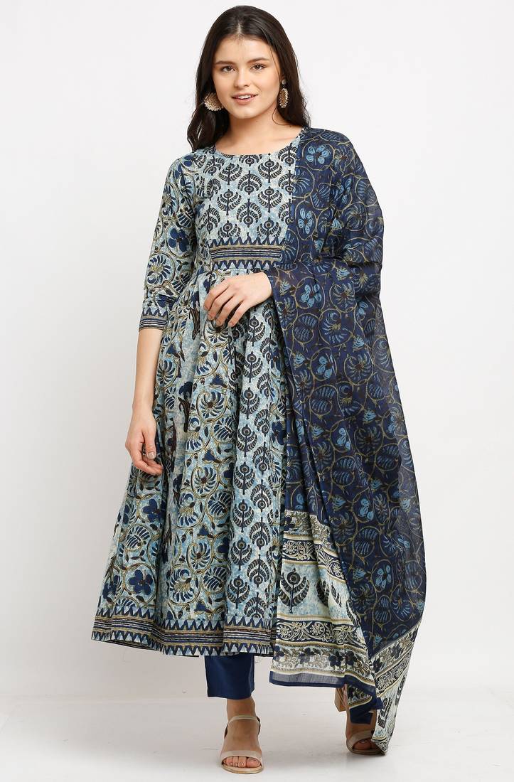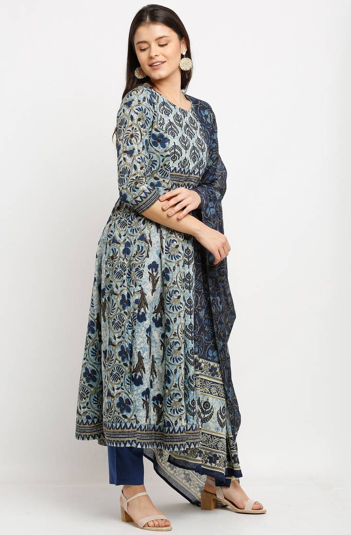 | Product Name | Blue Pure Cambric Cotton Printed Kurta & Pant With Dupatta | |