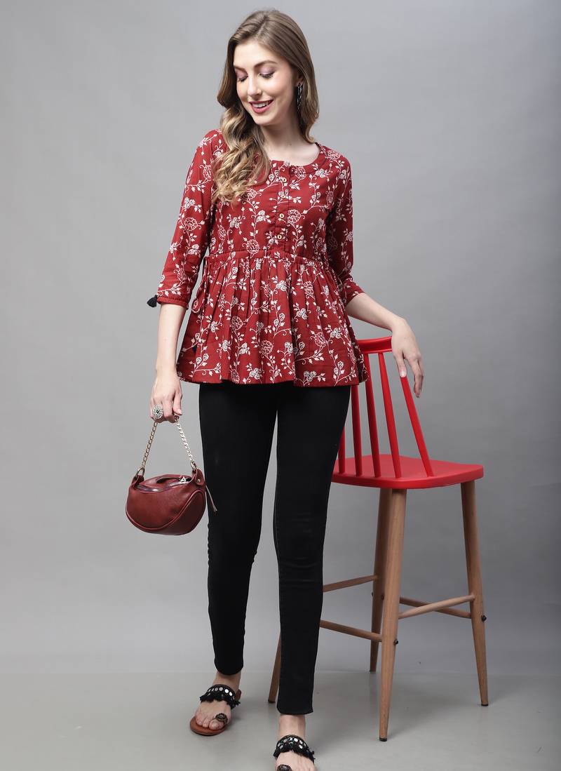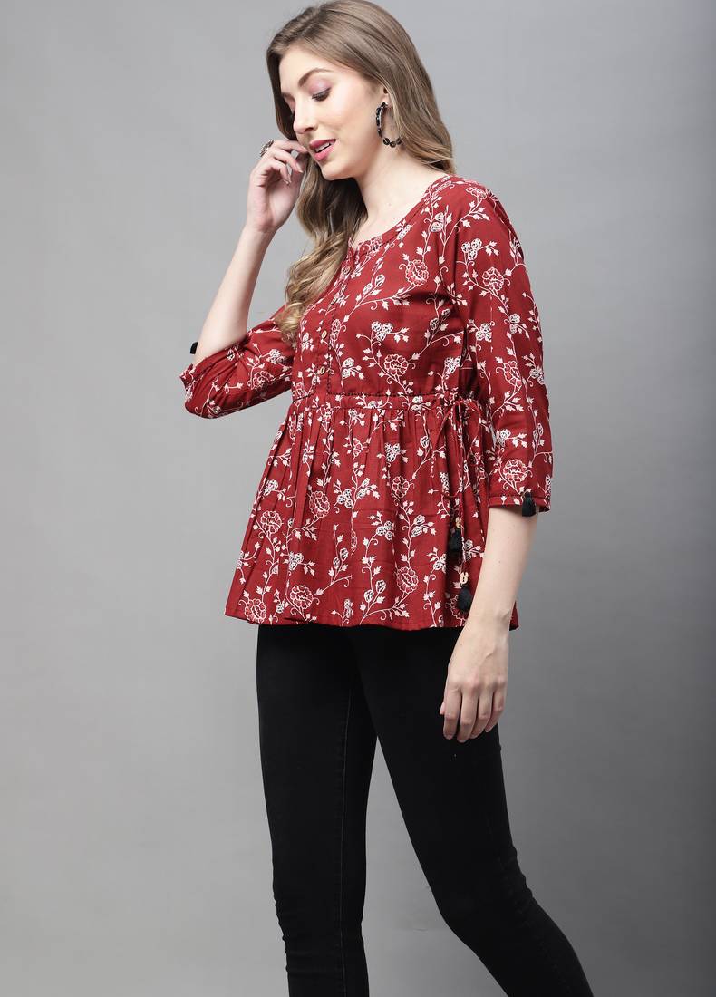 | Product Name | Brown Women's Pure Cotton Jaipuri Printed Short Top | |