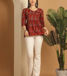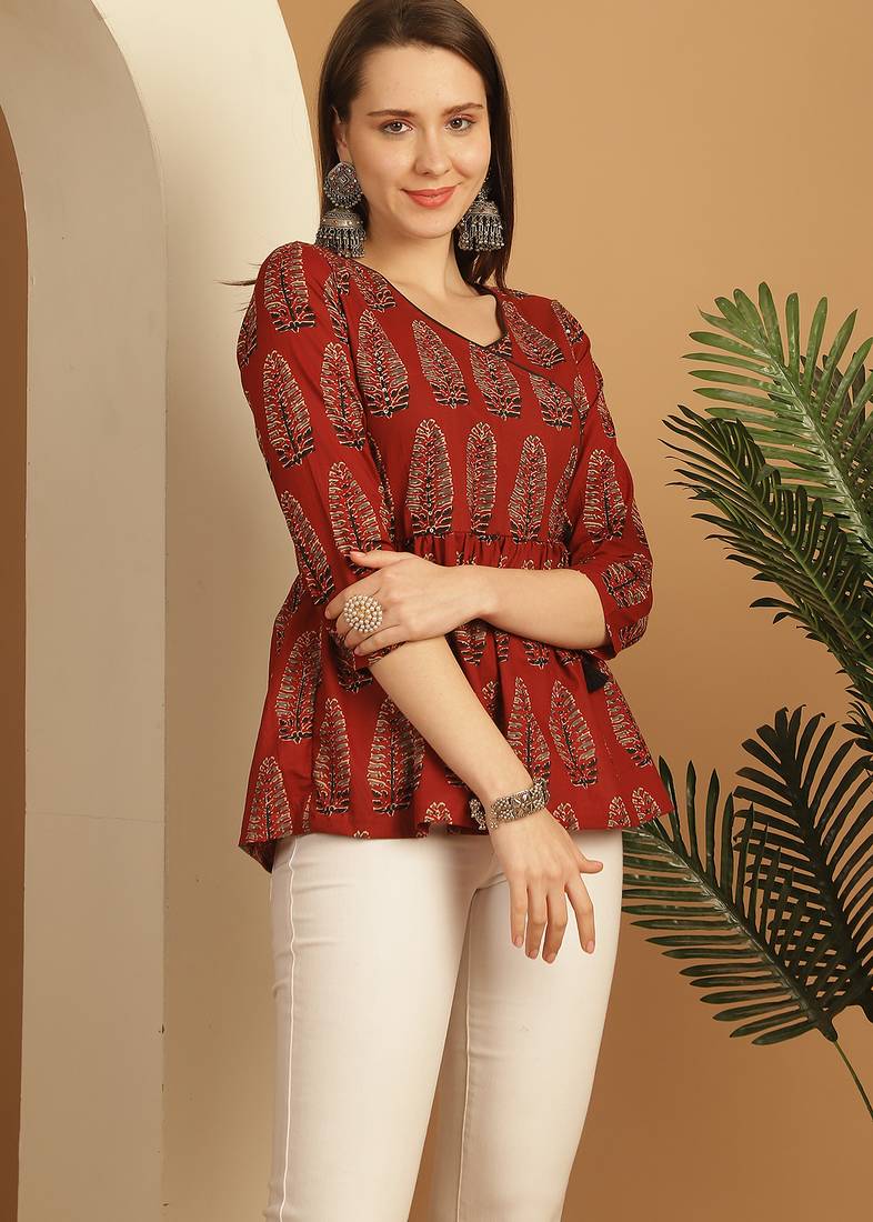 Product Name Brown Women's Pure Cotton Jaipuri Printed Short Top