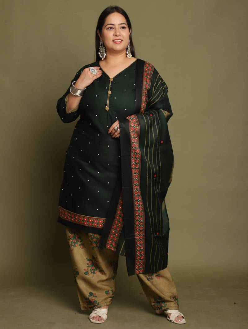 | Product Name | Green Cotton Blend Printed Ready To Wear Patiala Salwar Suit | |