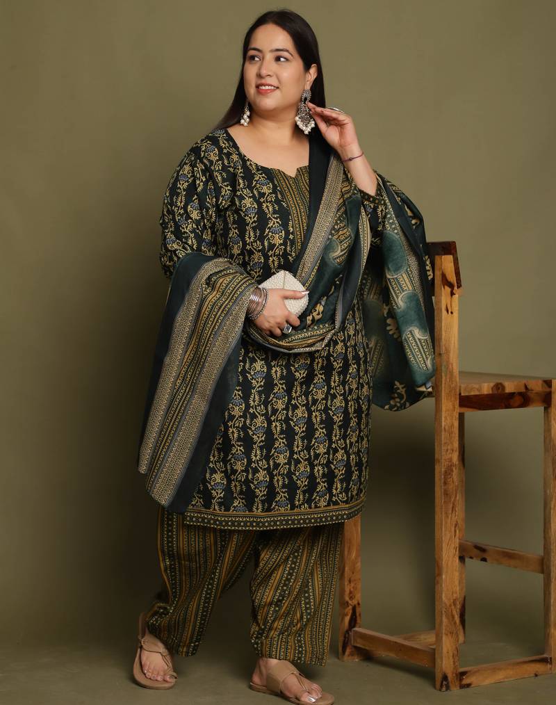 | Product Name | Green Cotton Blend Printed Ready To Wear Patiala Salwar Suit | |