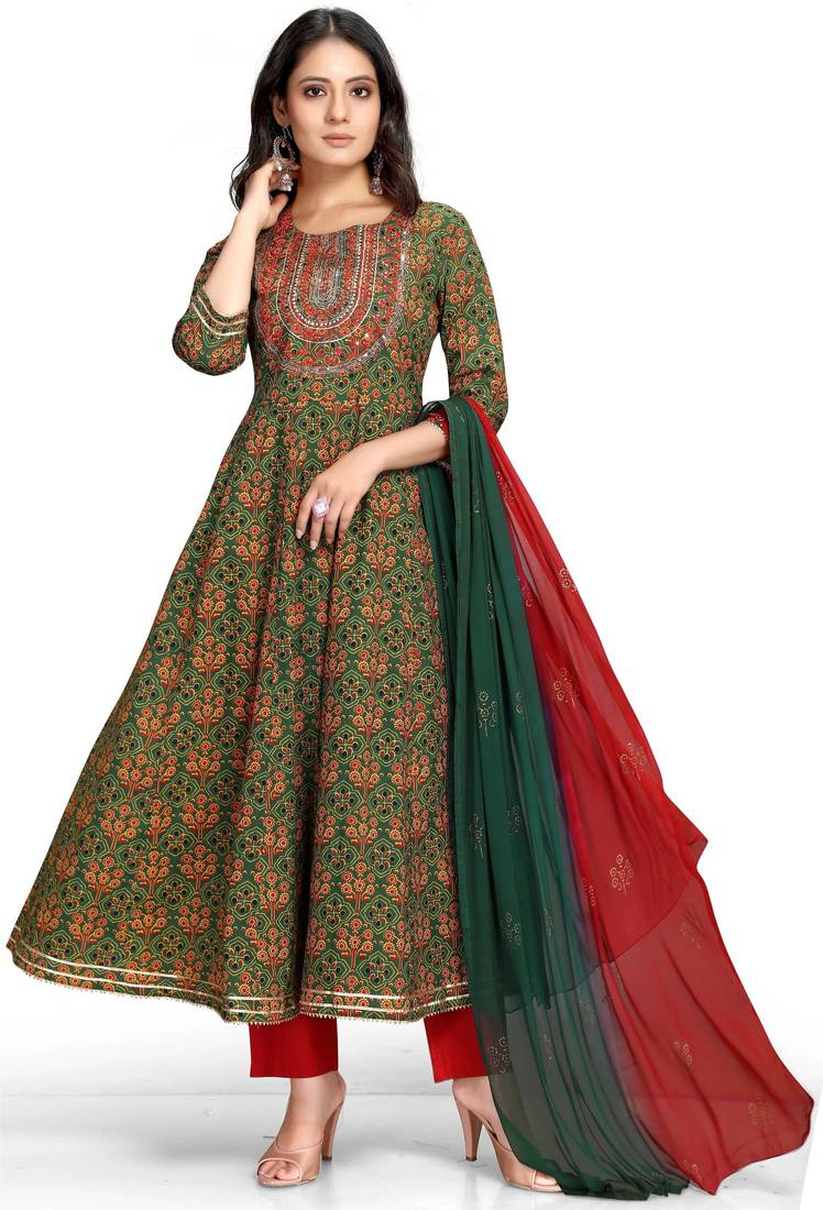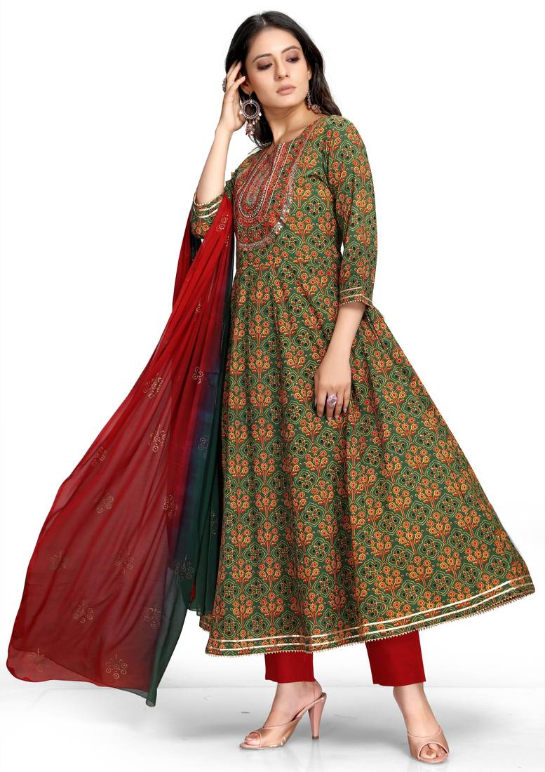 | Product Name | Green & Red Pure Cambric Cotton Embroidered Kurta & Pant With Dupatta | |