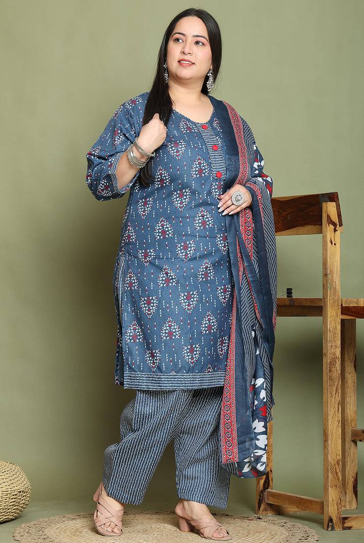 | Product Name | Grey & White Cotton Blend Printed Ready To Wear Patiala Salwar Suit | |