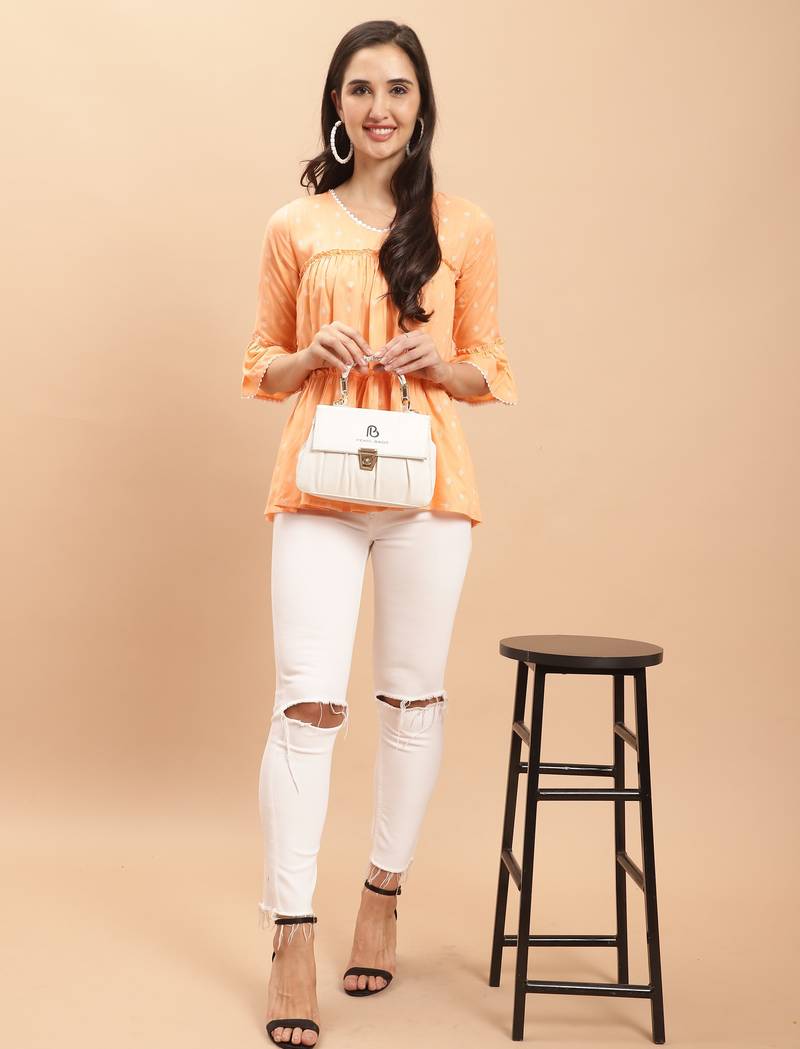 | Product Description | This Light Orange Colour Top Is The Fun Attire Of The Moment. Get It On And Style It With A Handbag And Earings For The Perfect Day Look. Its Casual Wear And Cute The Essentials For Your Wardrobe |