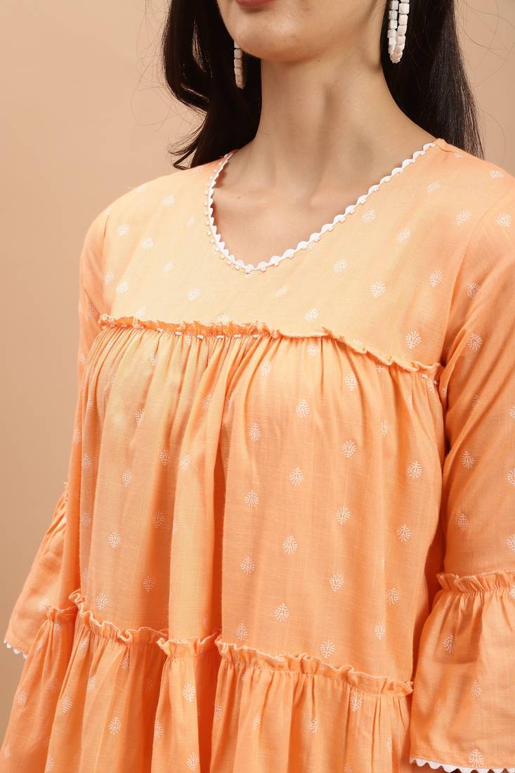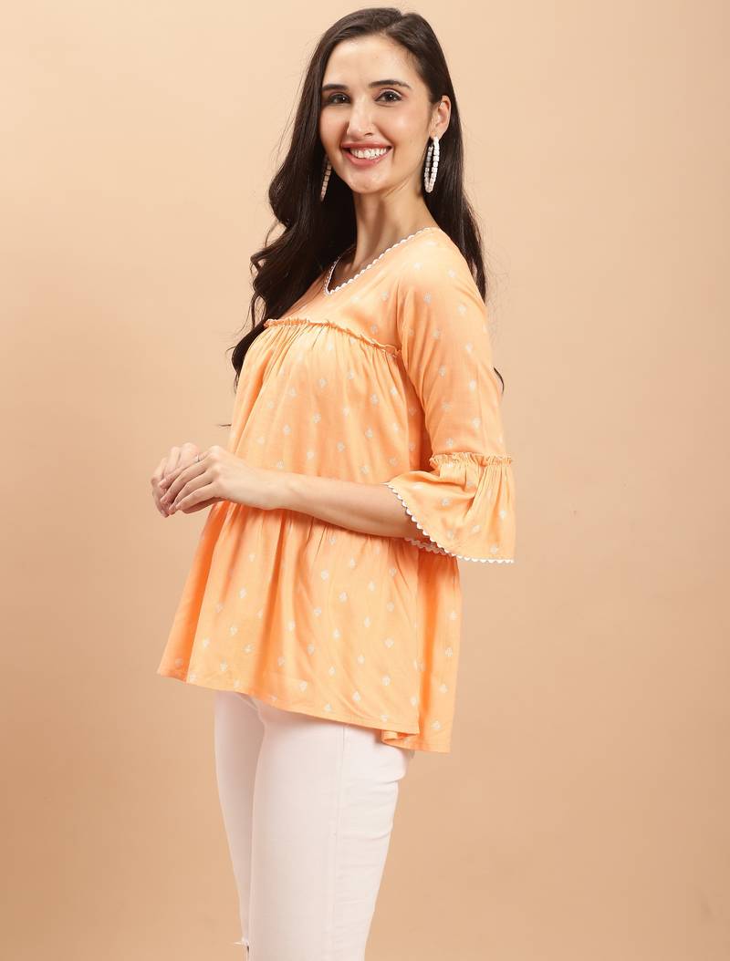 | Product Name | Light Orange Women's Pure Cotton Jaipuri Printed Short Top | |