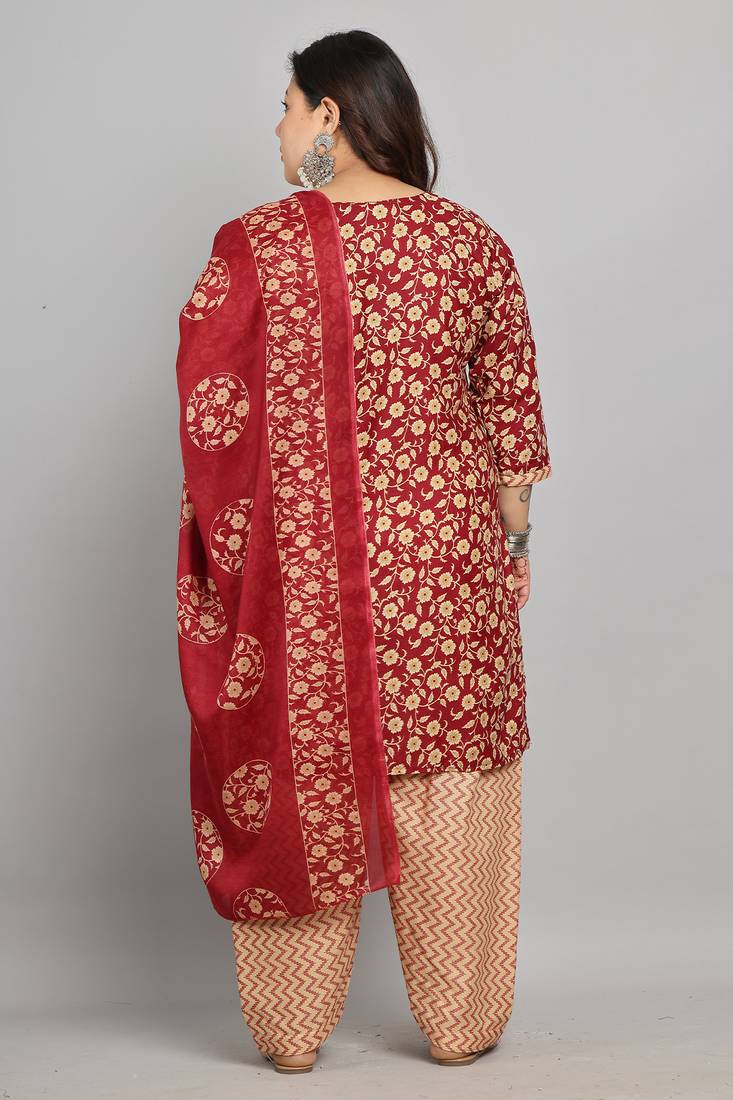 | Product Name | Maroon & Beige Cotton Blend Printed Ready To Wear Patiala Salwar Suit | |