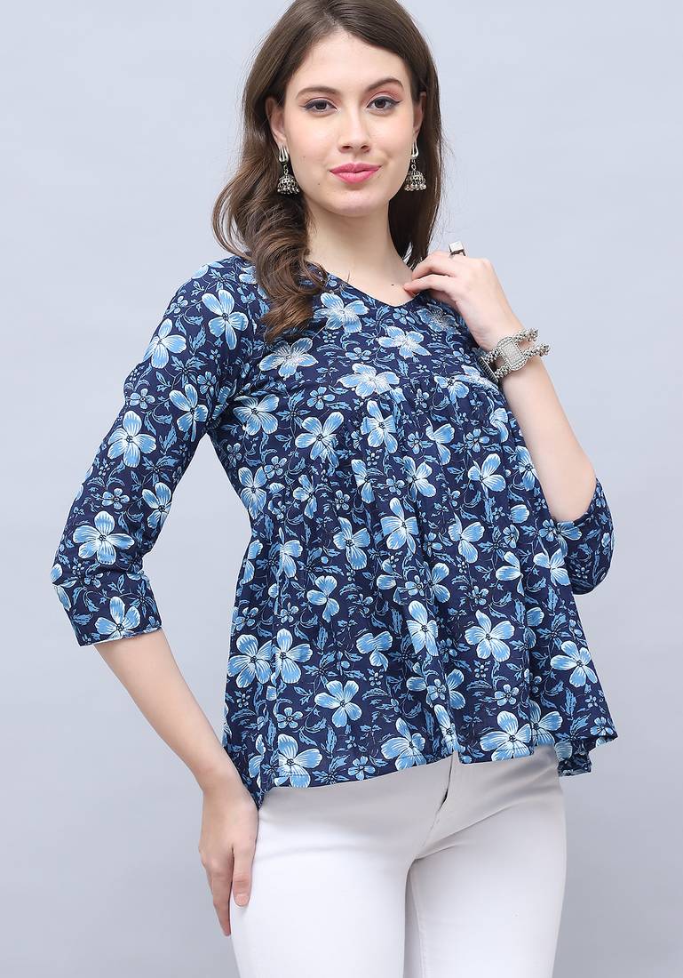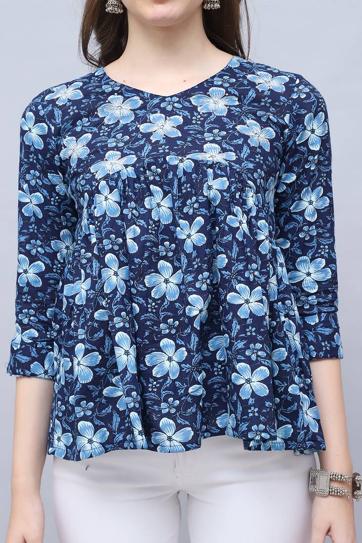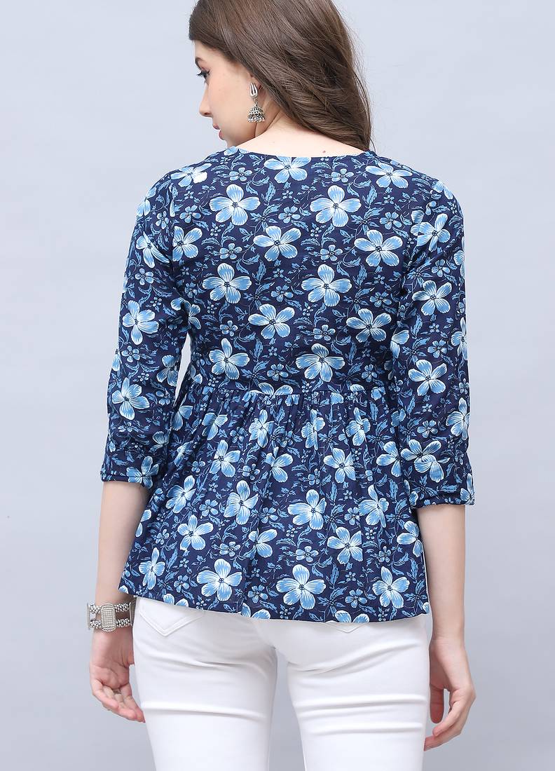 | Product Name | Navy Blue Women's Pure Cotton Jaipuri Printed Short Top | |