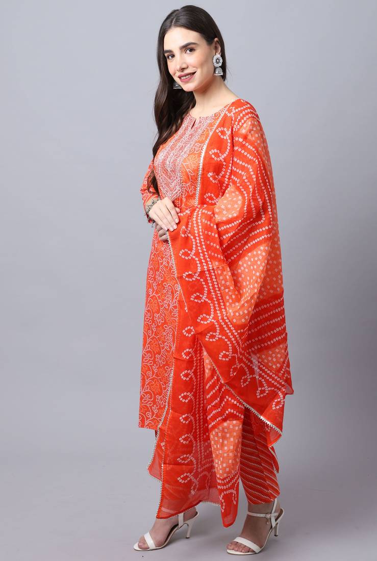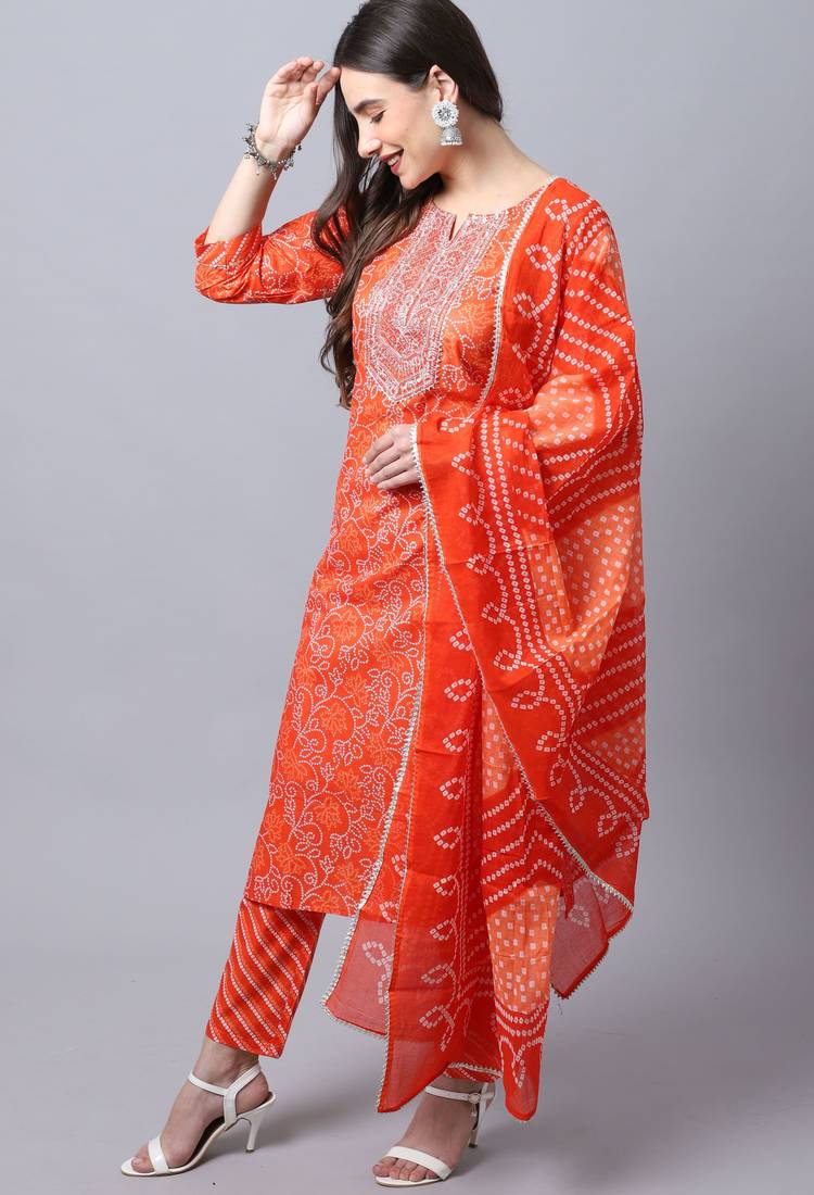 | Product Name | Orange Pure Cambric Cotton Jaipuri Printed & Embroidered Kurta & Pant With Dupatta | |