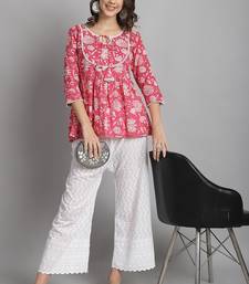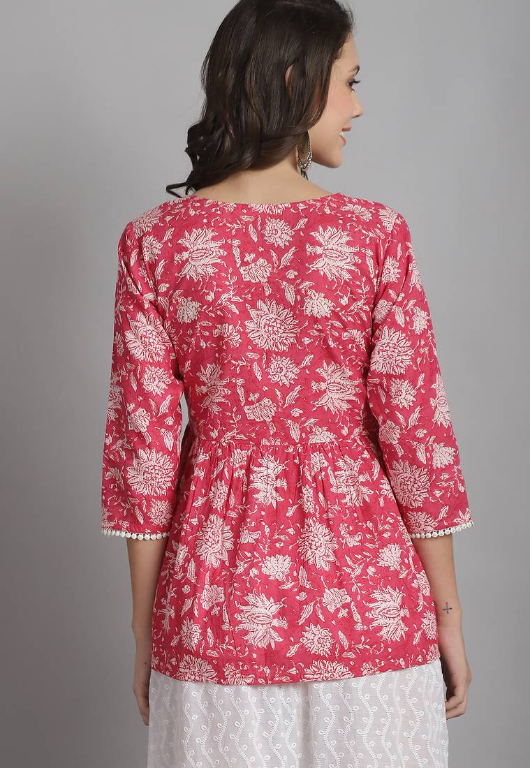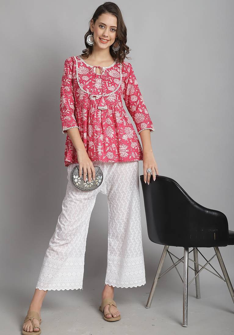 | Product Name | Pink & White Women's Pure Cotton Jaipuri Printed Short Top | |