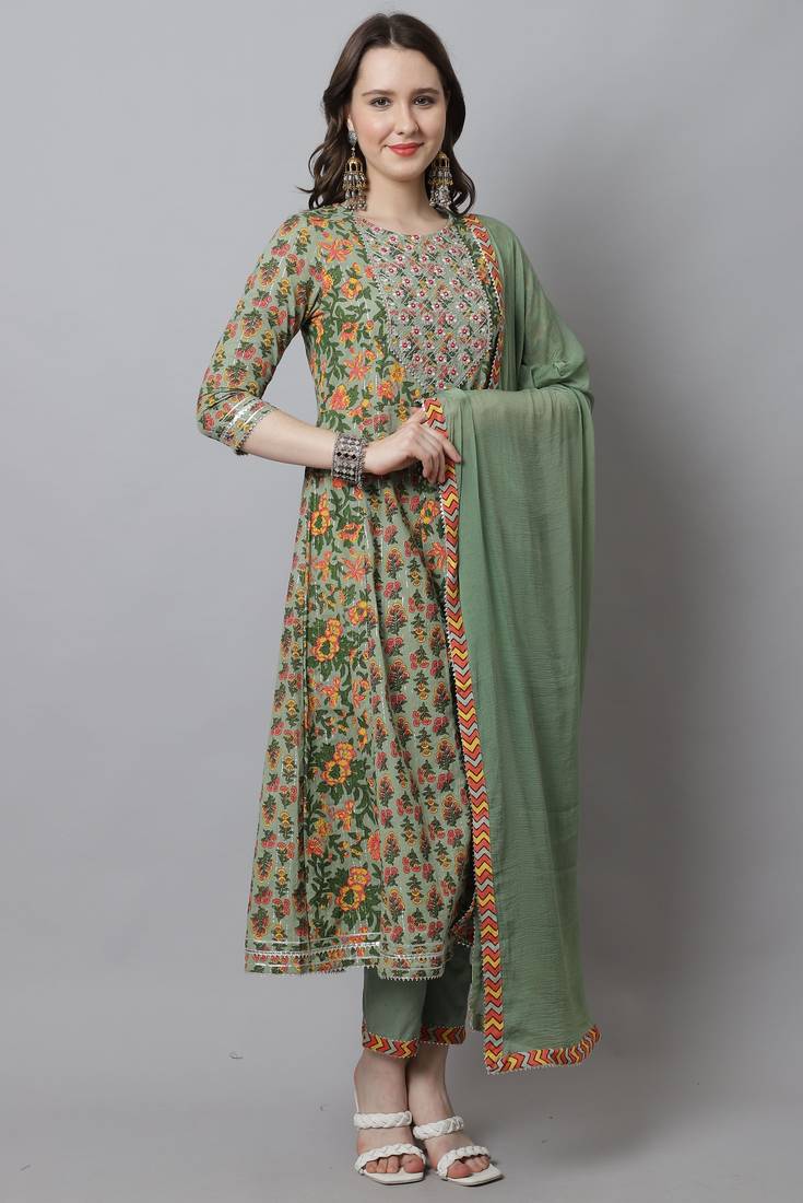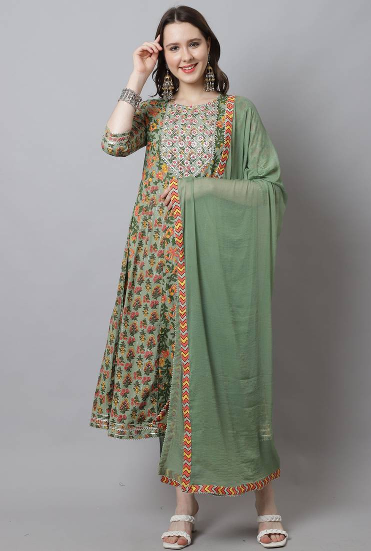 | Product Name | Pista Green Pure Cotton Embroidered Kurta & Pant With Dupatta | |