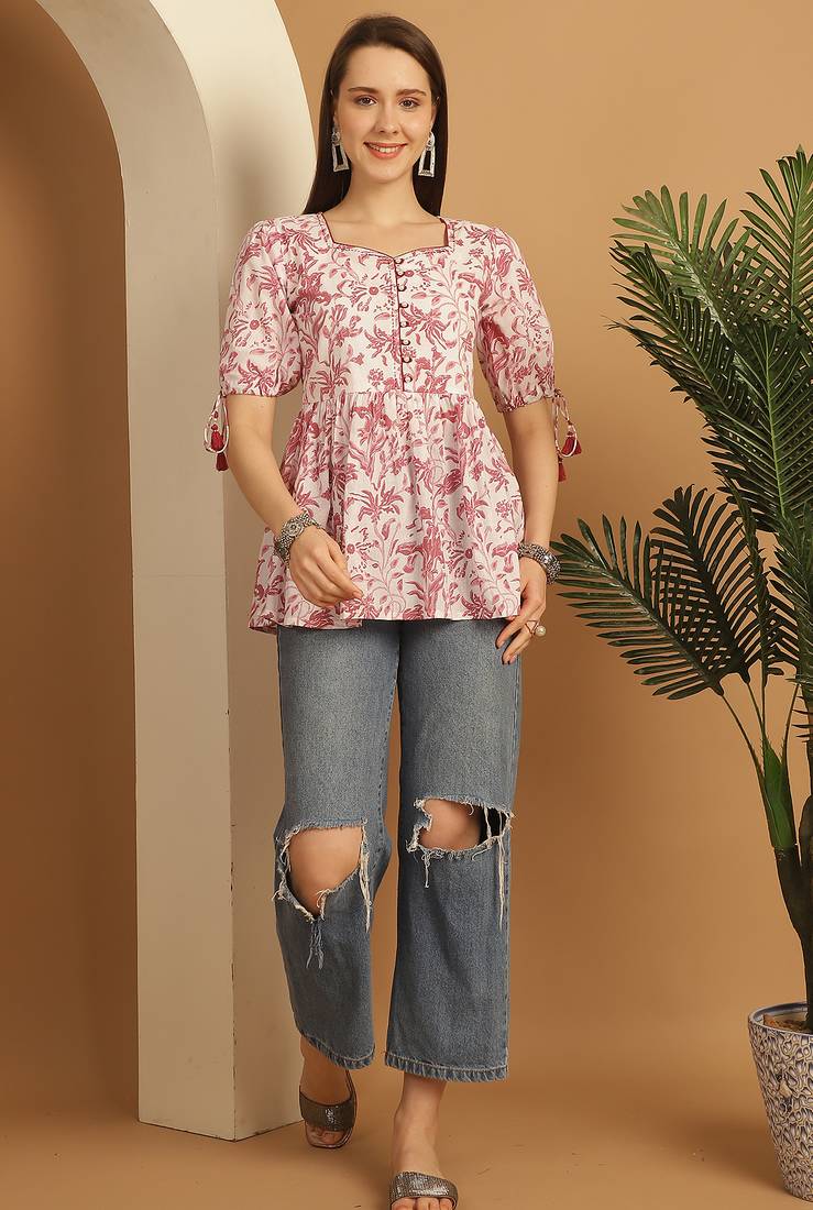 Product Name | Women's Pure Cotton Jaipuri Printed Short Top | |