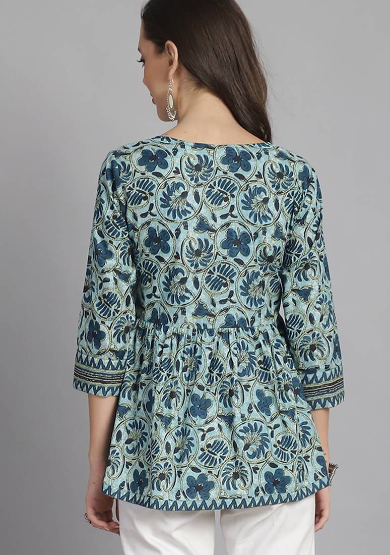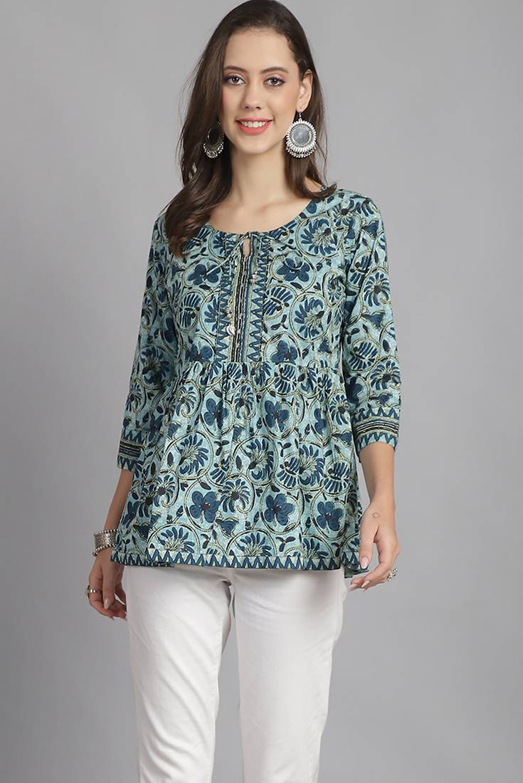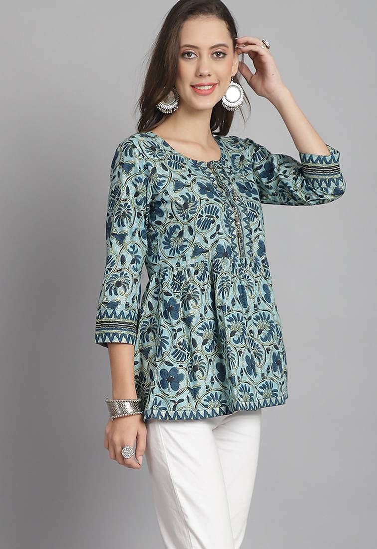 | Product Name | Sea Green Women's Pure Cotton Jaipuri Printed Short Top | |