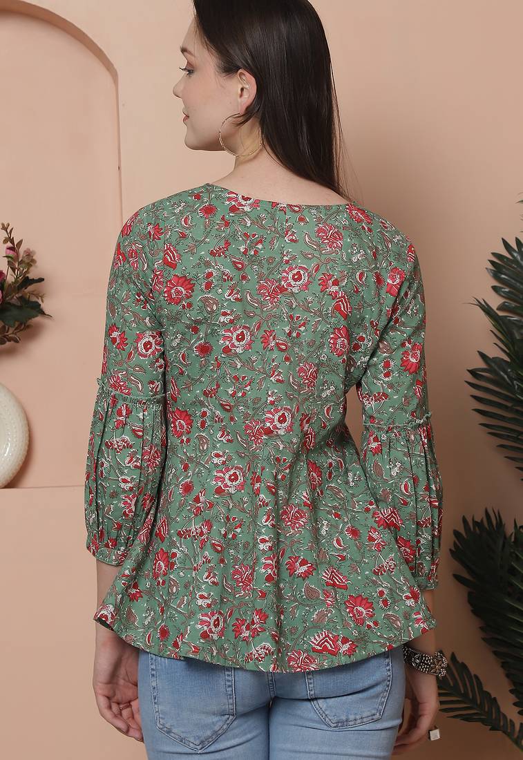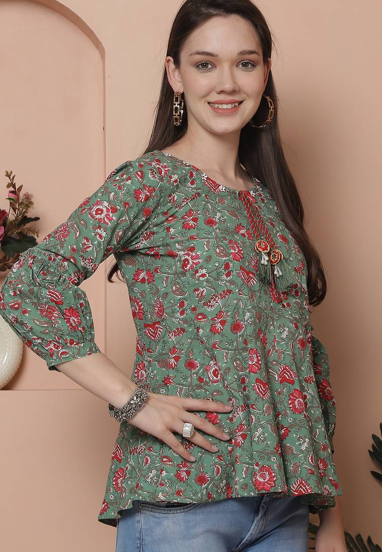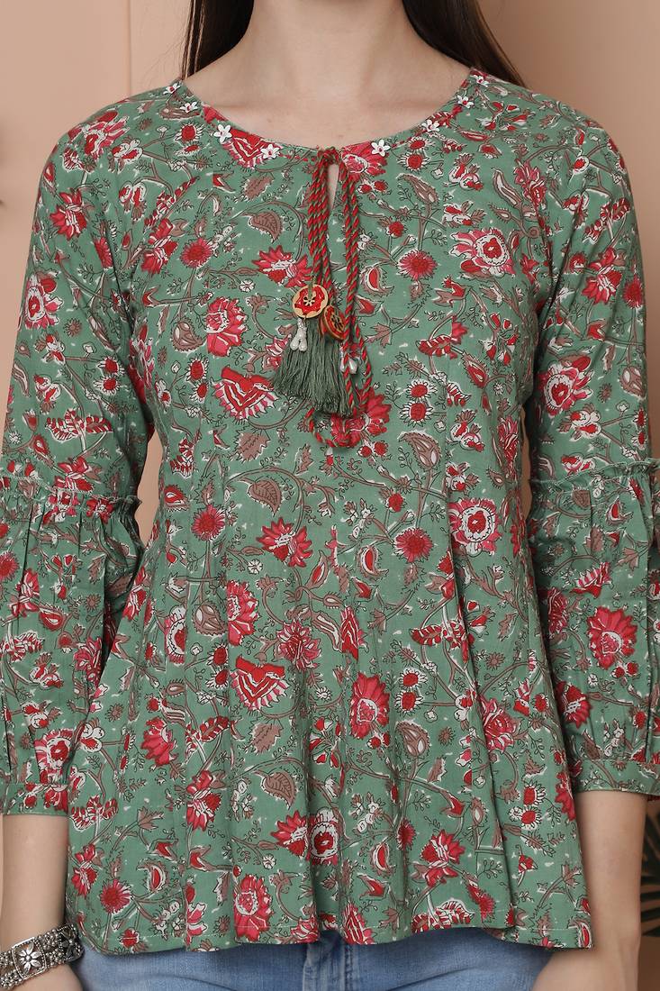 | Product Name | Sea Green Women's Pure Cotton Jaipuri Printed Short Top | |