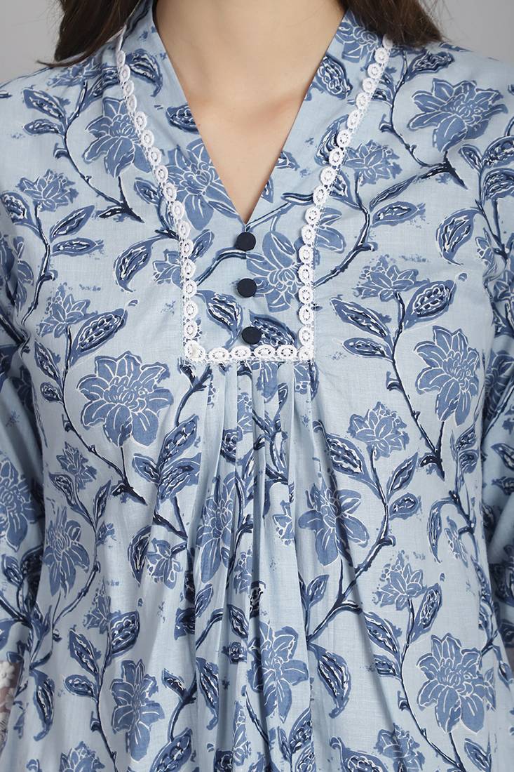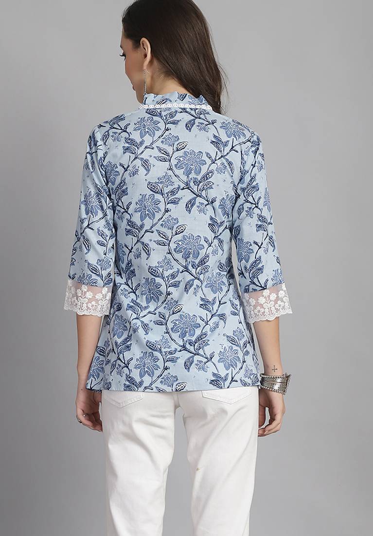 | Product Name | Sky Blue Women's Pure Cotton Jaipuri Printed Short Top | |
