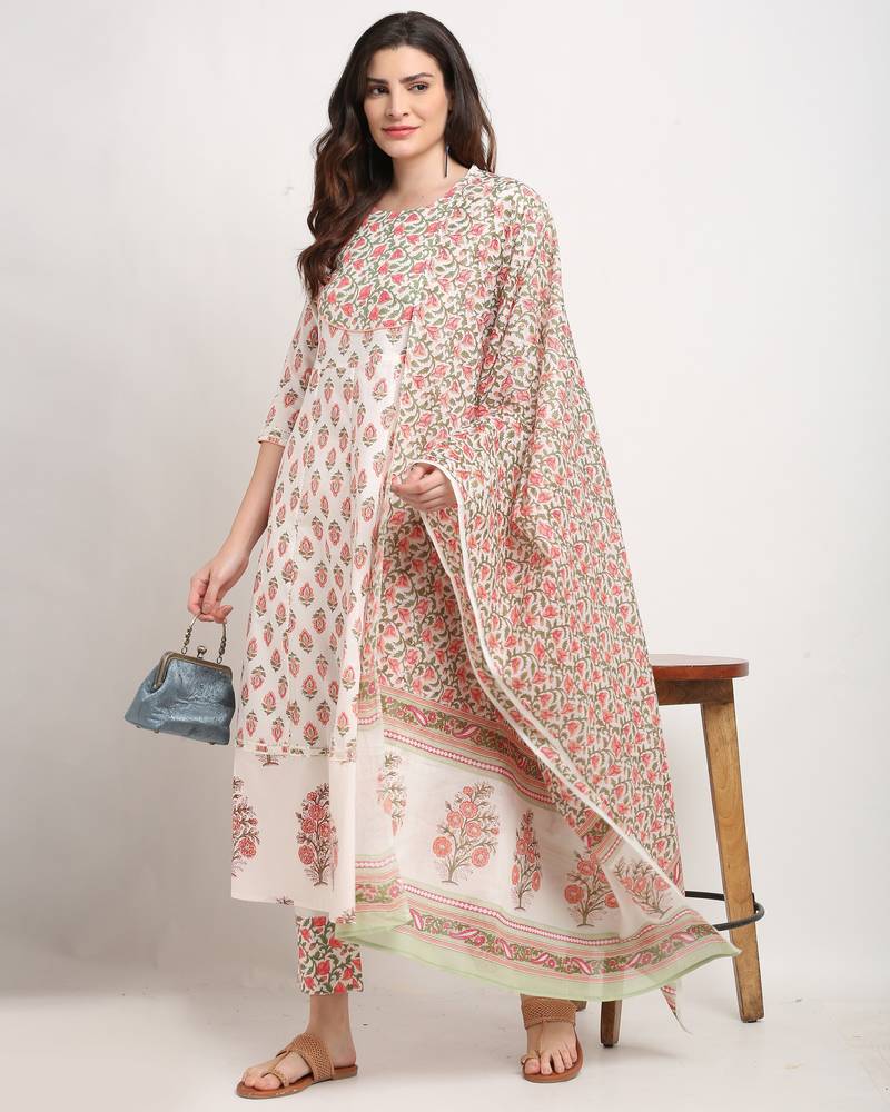 | Product Name | White & Pink Pure Cambric Cotton Printed Kurta & Pant With Dupatta | |