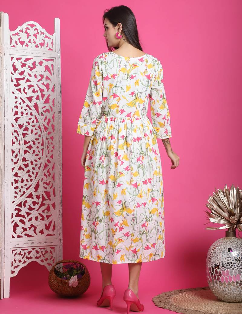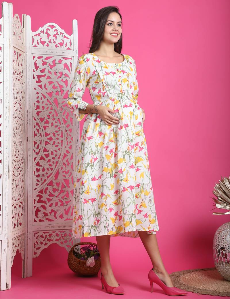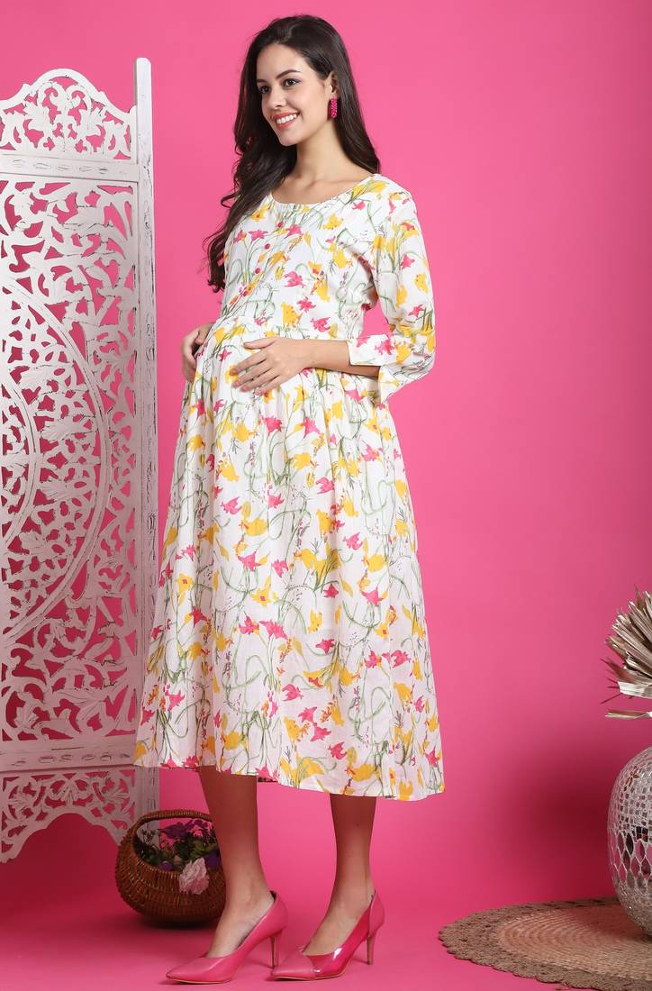 | Product Name | White Women's Cotton Jaipuri Printed Maternity Gown With Zipper | |