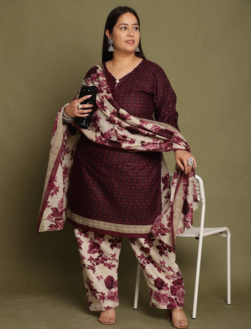 | Product Name | Wine Cotton Blend Printed Ready To Wear Patiala Salwar Suit | |