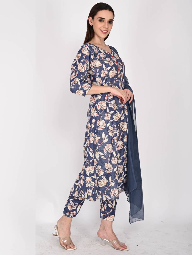 Women's cotton blend floral printed kurta & pant with dupatta stitched