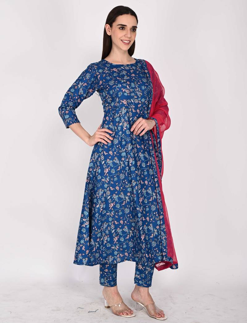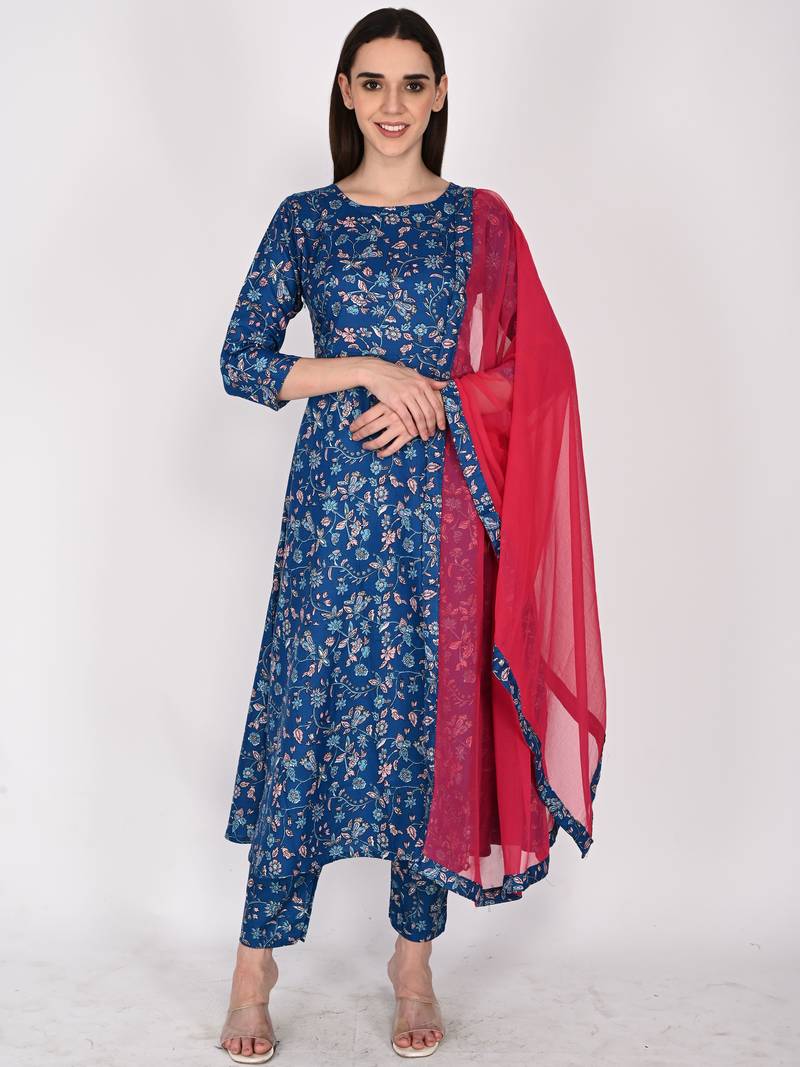 Women's cotton floral printed kurta & pant with dupatta stitched