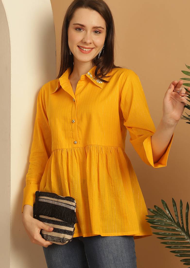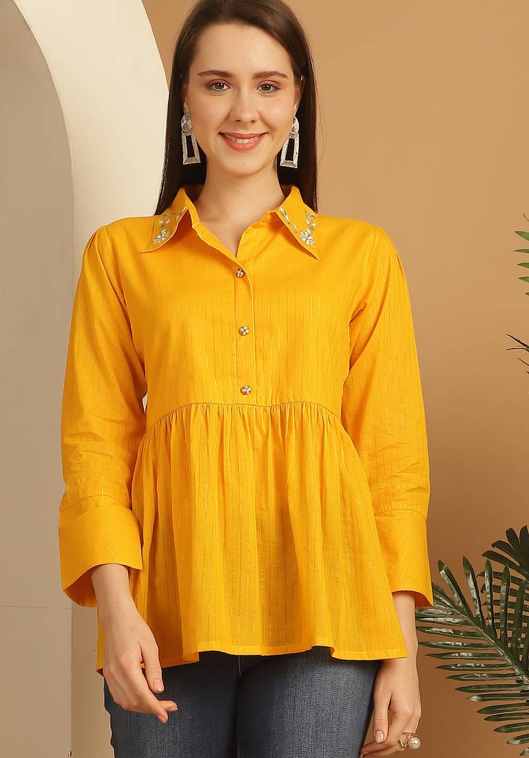 | Product Name | Yellow Women's Pure Cotton Embroidered Short Top | |