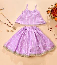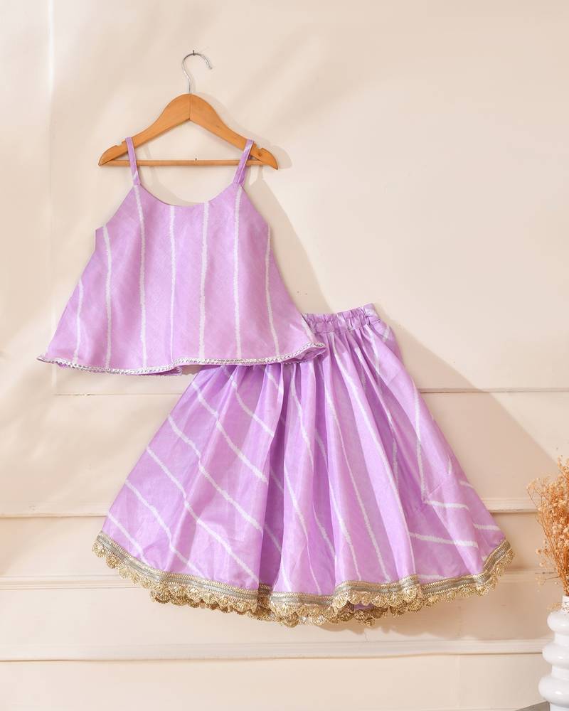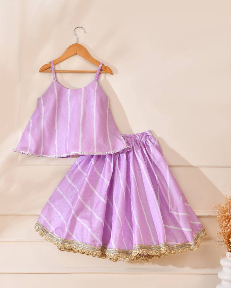 | Product Description | Graceful And Dreamy, The Little Panda Lavender Stripe Lehenga Set Is Designed To Add A Soft Festive Charm To Your Little One’s Wardrobe. Crafted From Lightweight, Breathable, And Skin Friendly Fabric, This Outfit Ensures All Day Comfort While Keeping The Look Elegant And Playful.The Sleeveless Blouse Features Delicate Stripe Inspired Print Detailing In Subtle White Tones On A Soothing Lavender Base, Offering A Clean And Modern Ethnic Look. Paired With A Matching Lehenga Skirt, The Set Is Beautifully Finished With Elegant Silver Lace Detailing Along The Hem, Adding A Gentle Festive Shimmer. The Lehenga Comes With An Elasticated Waistband For Easy Wear And Comfortable Movement, Making It Perfect For Twirls, Play, And Celebrations. Ideal For Festivals, Weddings, Birthdays, Family Functions, And Special Occasions, This Set Blends Simplicity With Festive Elegance. |