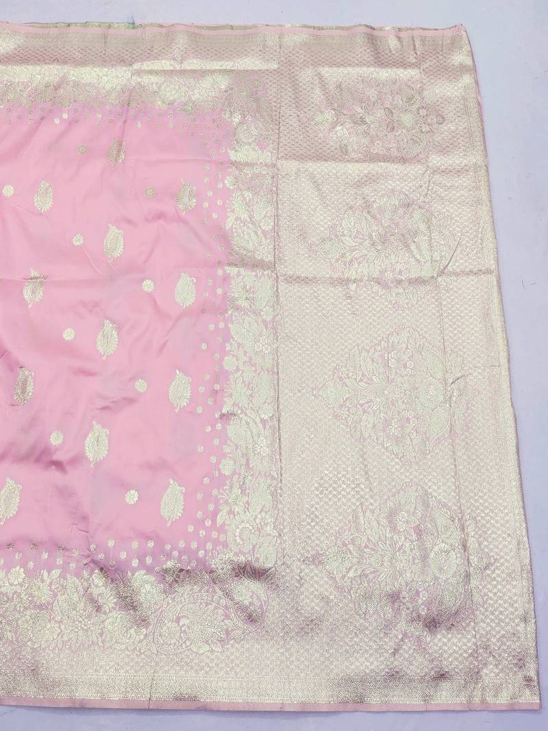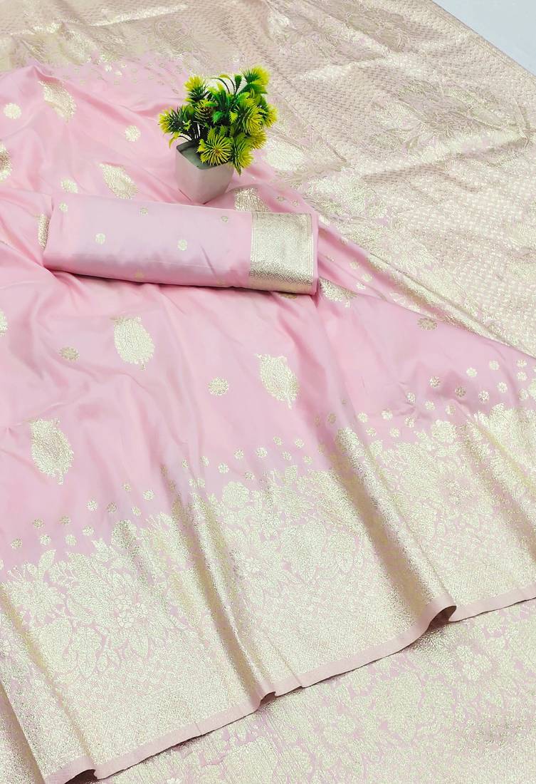 Baby pink art silk zari woven saree with blouse