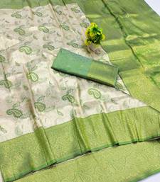 Light silvery green zari woven kanjivaram silk saree with blouse