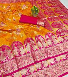 Mustard zari woven art silk bridal style premium saree with blouse
