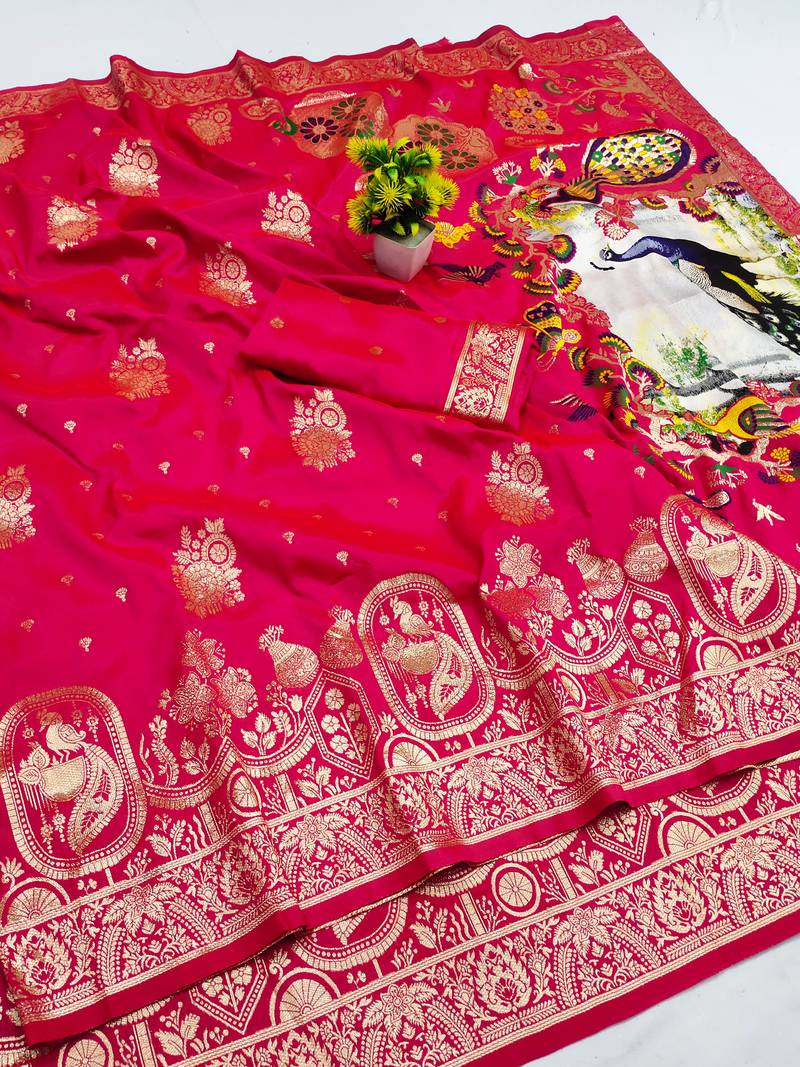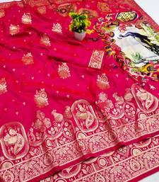 Pink zari woven art silk saree with blouse
