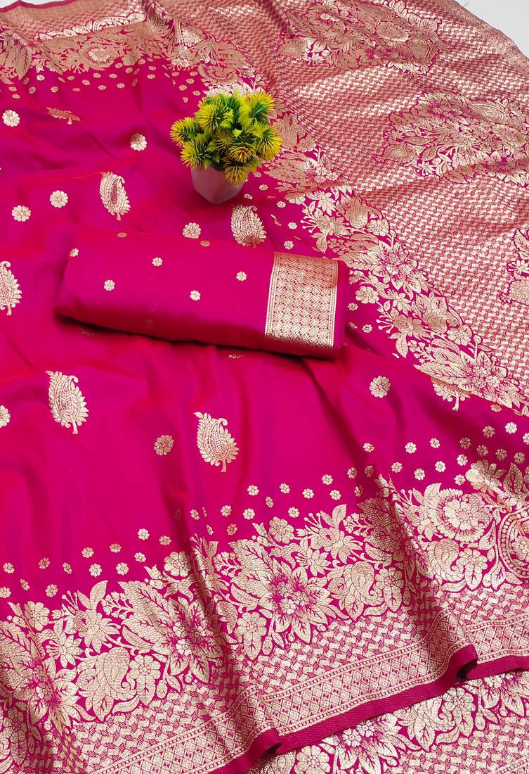 Product Name | Rani Pink Art Silk Zari Woven Saree With Blouse | |