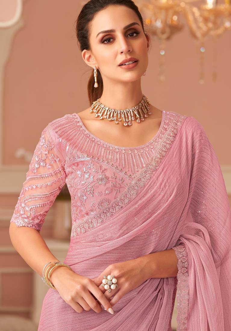 Baby pink chiffon embroidered designer-embroidered -sarees with bridal embroiderd blouse