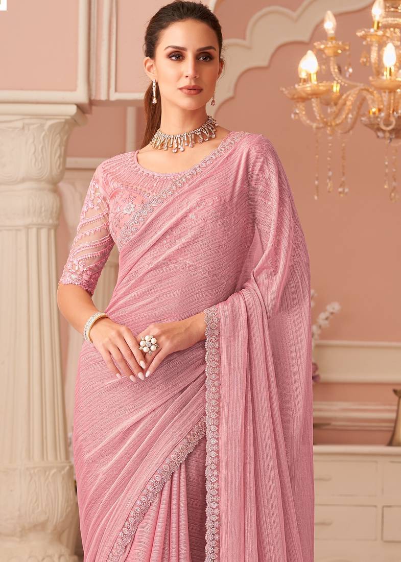 | Product Name | Baby Pink Chiffon Embroidered Designer Embroidered Sarees With Bridal Embroiderd Blouse | |