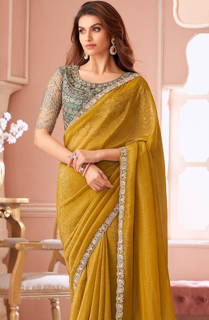 | Product Name | Mehendi Chiffon Embroidered Bollywood Sarees With Bridal Embroiderd Blouse | |