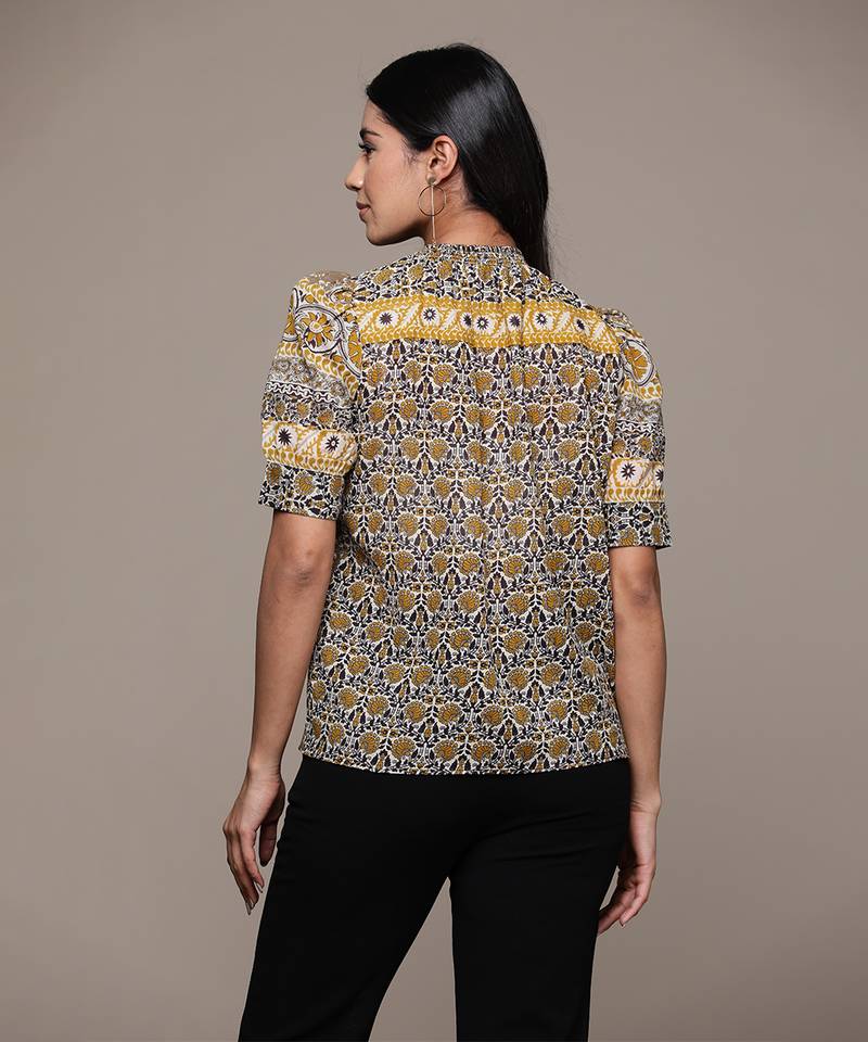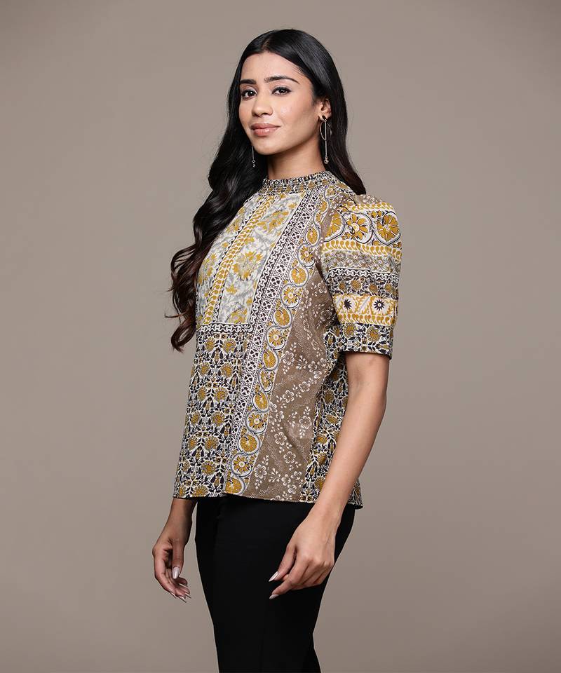 | Product Description | Aarke Grey Round Neck Half Sleeve Printed Top
